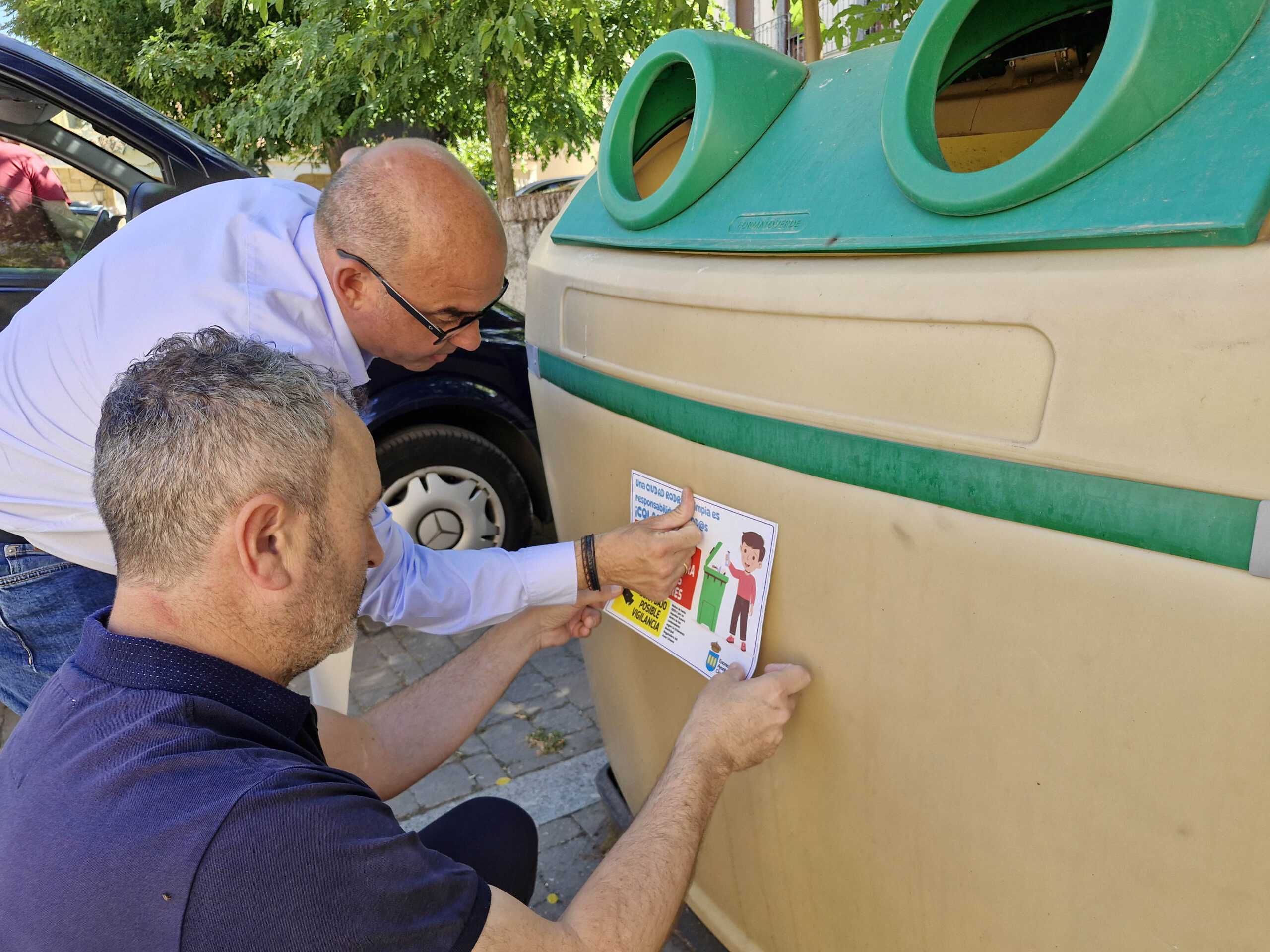 En más de medio centenar de puntos de recogida se colocarán pegatinas que avisan sobre la prohibición, recogida en la correspondiente ordenanza municipal, de depositar basura fuera de los contenedores.
