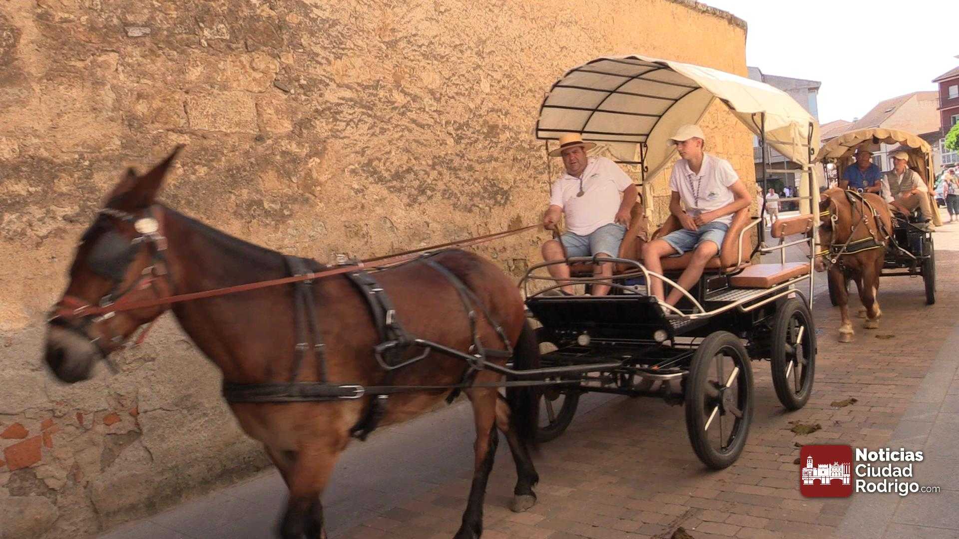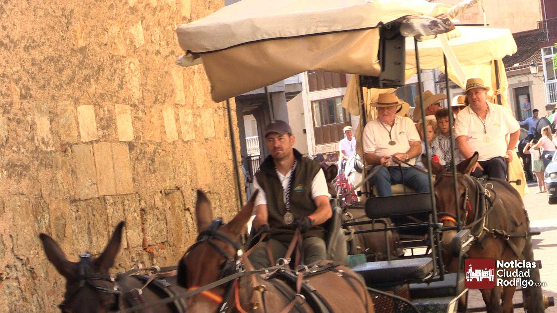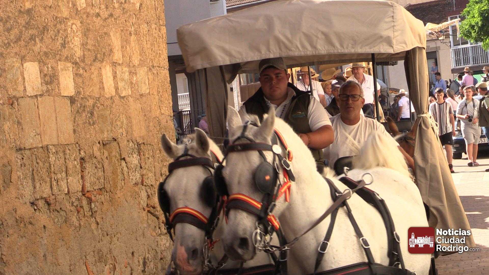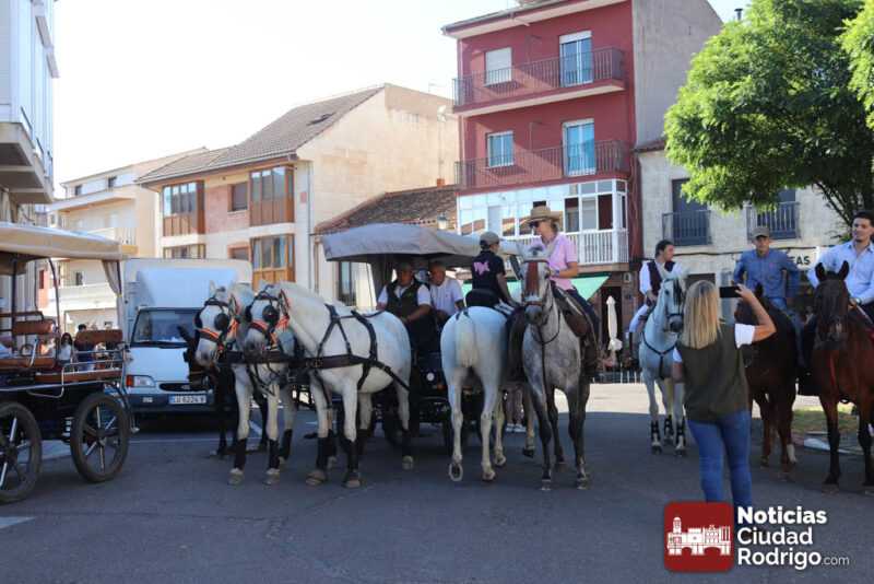 La participación en la Romería al Santuario de la Peña de Francia que parte de Ciudad Rodrigo sigue batiendo récord. Mucha gente a pie, numerosas carretas y decenas de caballos acompañando el carruaje de la Virgen en el punto de partida, el Monasterio de las Madres Carmelitas, al que acudió numeroso público para ver la salida.