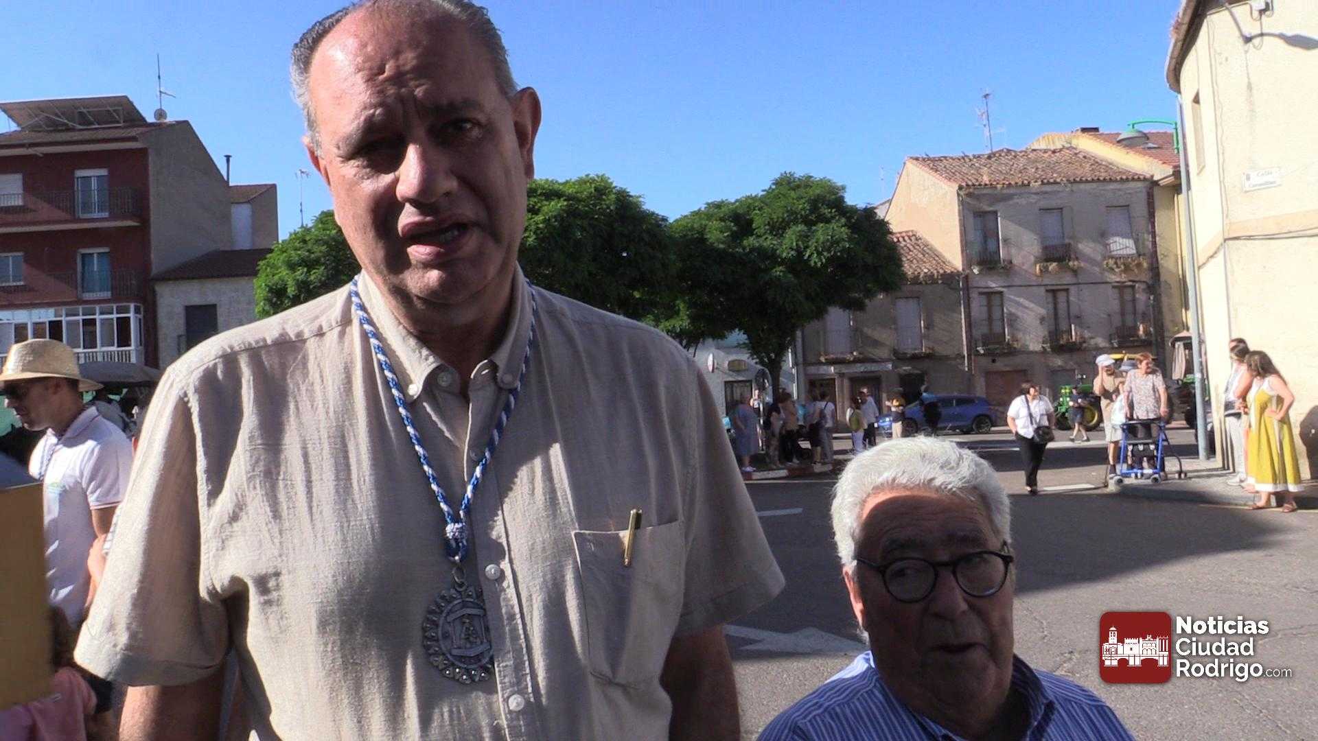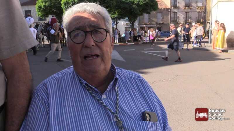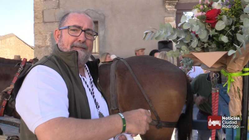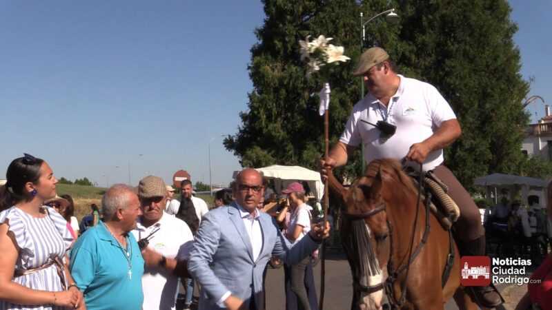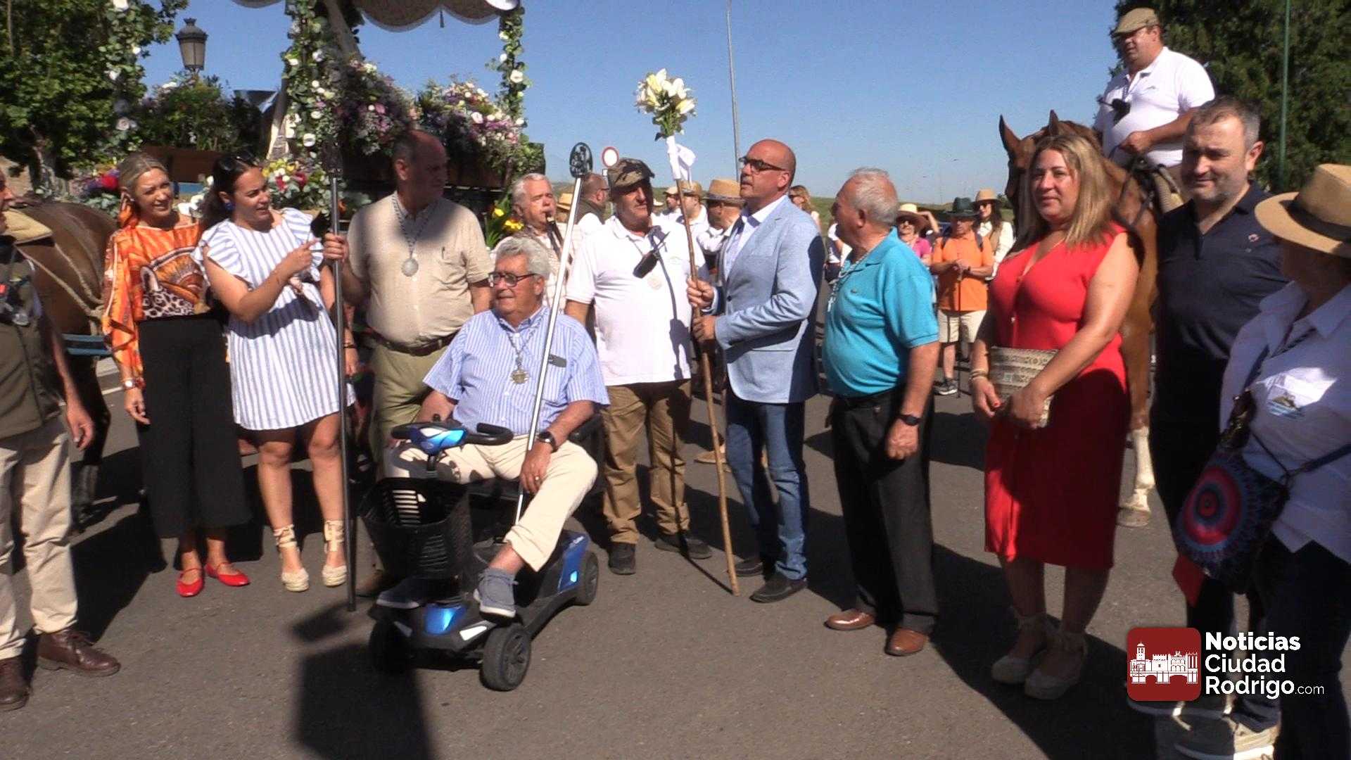Al llegar al Árbol Gordo, ha tenido lugar la despedida por parte de miembros de la Corporación Municipal de Ciudad Rodrigo. El teniente alcalde Ramón Sastre ha entregado el bastón al Hermano de Carretas de este año, Ismael Herrero.