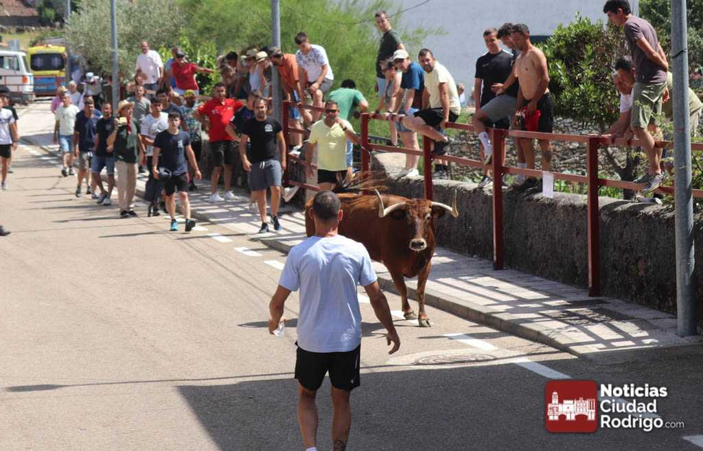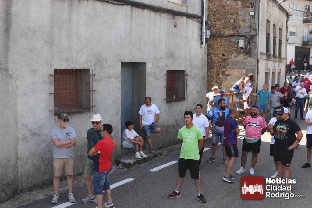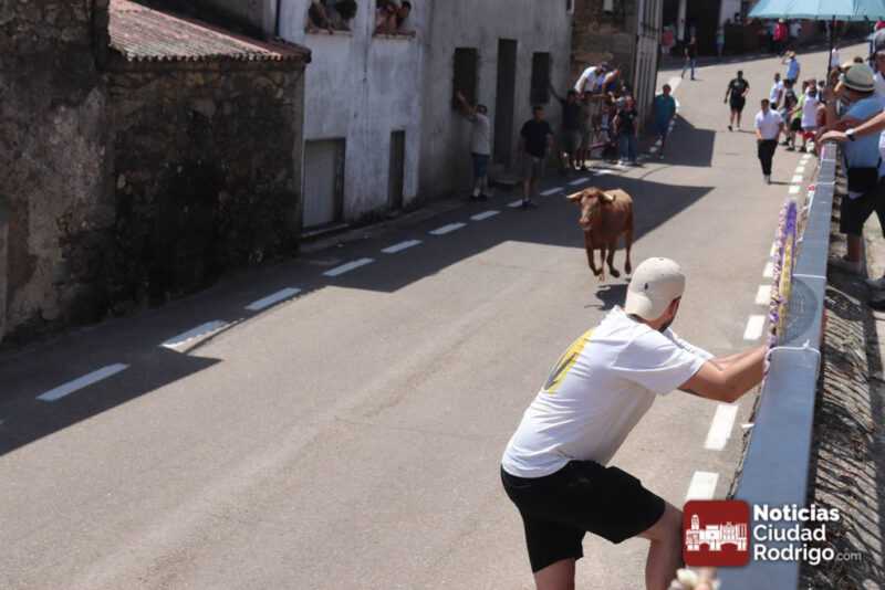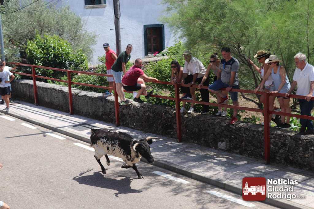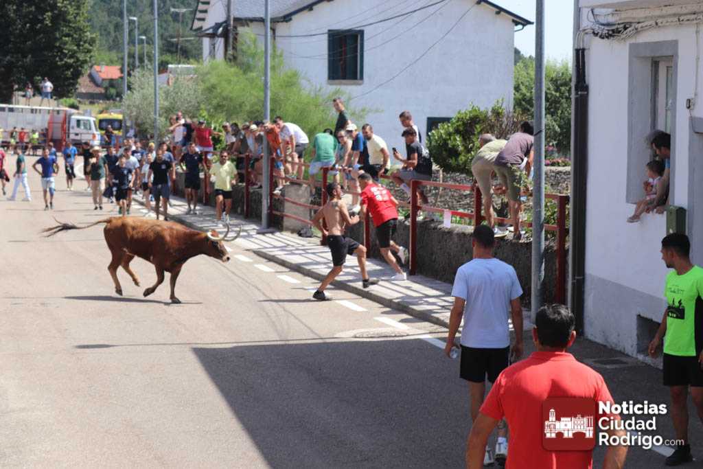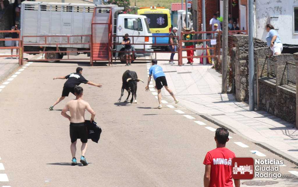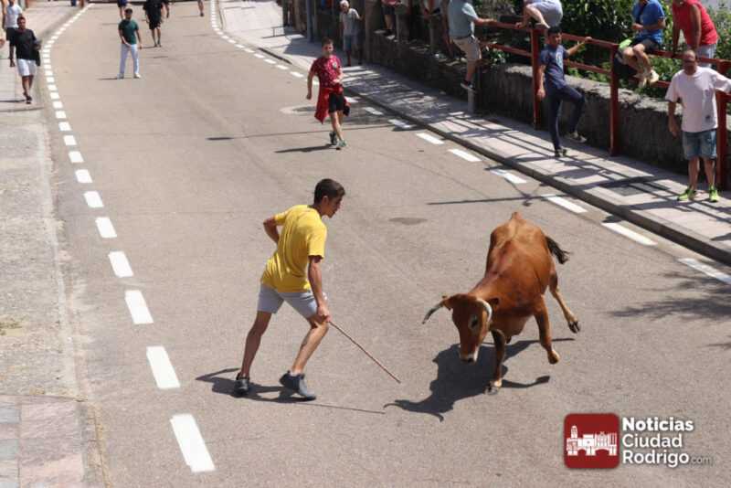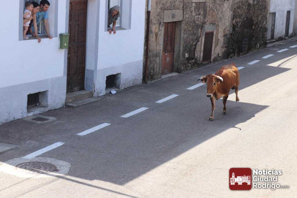 Navasfrías ha vivido una emocionante y vibrante Vaca de Cajón en esta calurosa mañana de domingo 29 de junio. Antes ha tenido lugar un encierro infantil con minibueyes que han sido muy bien acogidos por los niños y niñas participantes. Y después ha habido suelta de vaquillas, con un susto por parte de una de ellas que decidió colarse en una cochera, sorprendiendo a las personas que estaban dentro. Además, una señora tuvo que ser atendida por ambulancia debido a un mareo. Por lo demás, todo transcurrió con normalidad, hubo participación y mucha animación. La última tarde de las fiestas de San Juan ha estado dedicada a los niños.