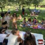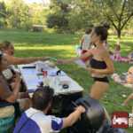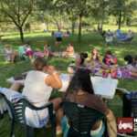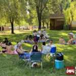 Varias decenas de personas, distribuidas en diferentes lugares del césped y de los bancos, bailaron, cantaron y marcaron sus cartones al ritmo de las diferentes canciones que iban saliendo y que servían para identificar los números correspondientes, disfrutando de una amena y diferente tarde.