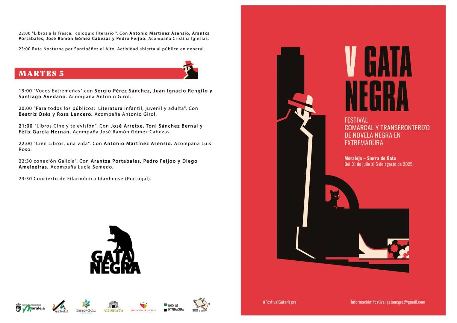 El festival literario de novela negra «Gata Negra» celebrará su quinta edición entre el 31 de julio y el 5 de agosto, en Moraleja y diversas localizaciones de la Sierra de Gata.