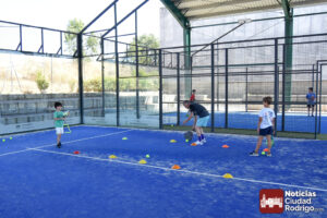 El verano deportivo en Ciudad Rodrigo cumple una semana tras el inicio de una de las principales novedades en lo que a oferta para niños y jóvenes se refiere. La Escuela de Verano de Pádel tuvo durante esta mañana de martes una nueva sesión, en la que participan una decena de niños y niñas de hasta 16 años.