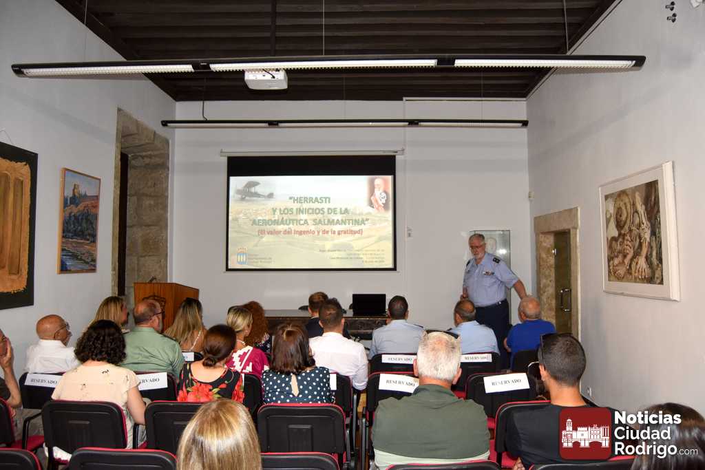 De la misma manera, Ángel Álvarez Marcos, bajo el título «Herrasti y los inicios de la aeronáutica salmantina”, hizo una muestra acerca de varios personajes relacionados con el aire y vinculados a Ciudad Rodrigo, relacionando también la labor de Herrasti con conceptos como el ingenio o la gratitud. Posteriormente, el Teniente Coronel hizo una visita guiada a los presentes por la exposición del Ejército del Aire que se ubica en la Casa de la Cultura