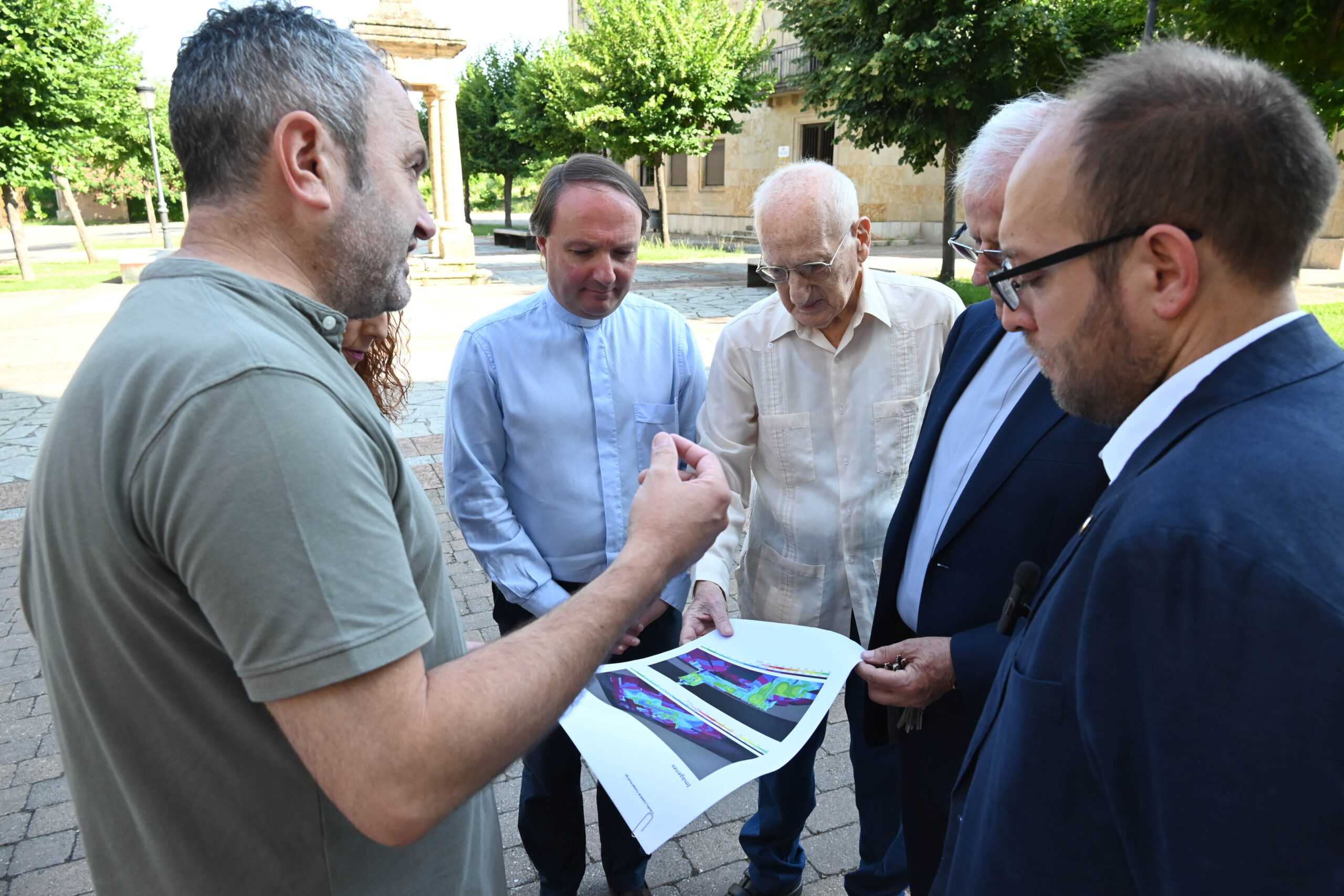 El alcalde ha presentado el proyecto al Deán de la Catedral, Ángel Martín Carballo, y al Vicario General de la Diócesis, José María Rodríguez-Veleiro, acompañado por el delegado de Alumbrado Público y Sostenibilidad Ambiental, Rubén Benito, y la delegada de Cultura y Turismo, Belén Barco.