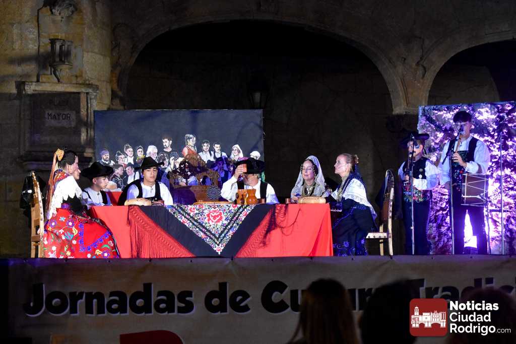 Las Jornadas de Cultura Tradicional Rayana 2025 Ciudad Rodrigo tuvieron como final la puesta en escena de “La Primera Cena Charra”, el proyecto multidisciplinar del mirobrigense Lemus y que no dejó indiferente a ninguna de las cerca de 700 personas que se encontraban en la Plaza Mayor mirobrigense para presenciar el espectáculo.