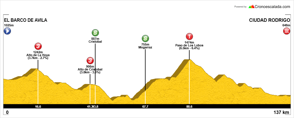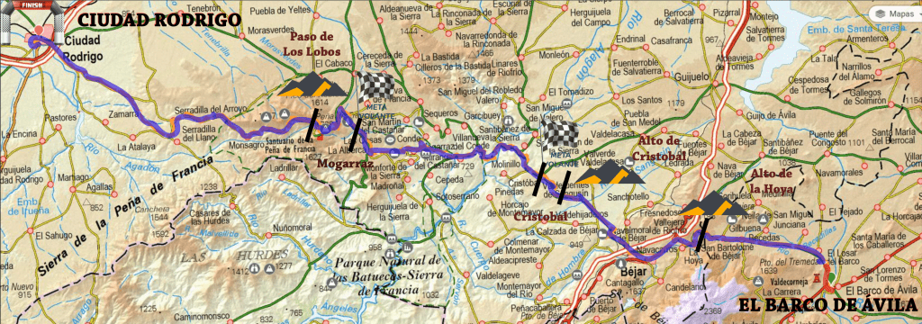 Laa etapa que recorre la Sierra de Francia, pasando a continuación por Monsagro y Serradilla del Arroyo (16:40-17:00) hasta llegar a Ciudad Rodrigo y tras cruzar el Puente Mayor y la Puerta de la Colada tendrá la meta en la Plaza Mayor de Ciudad Rodrigo. Este es el recorrido de la llegada: