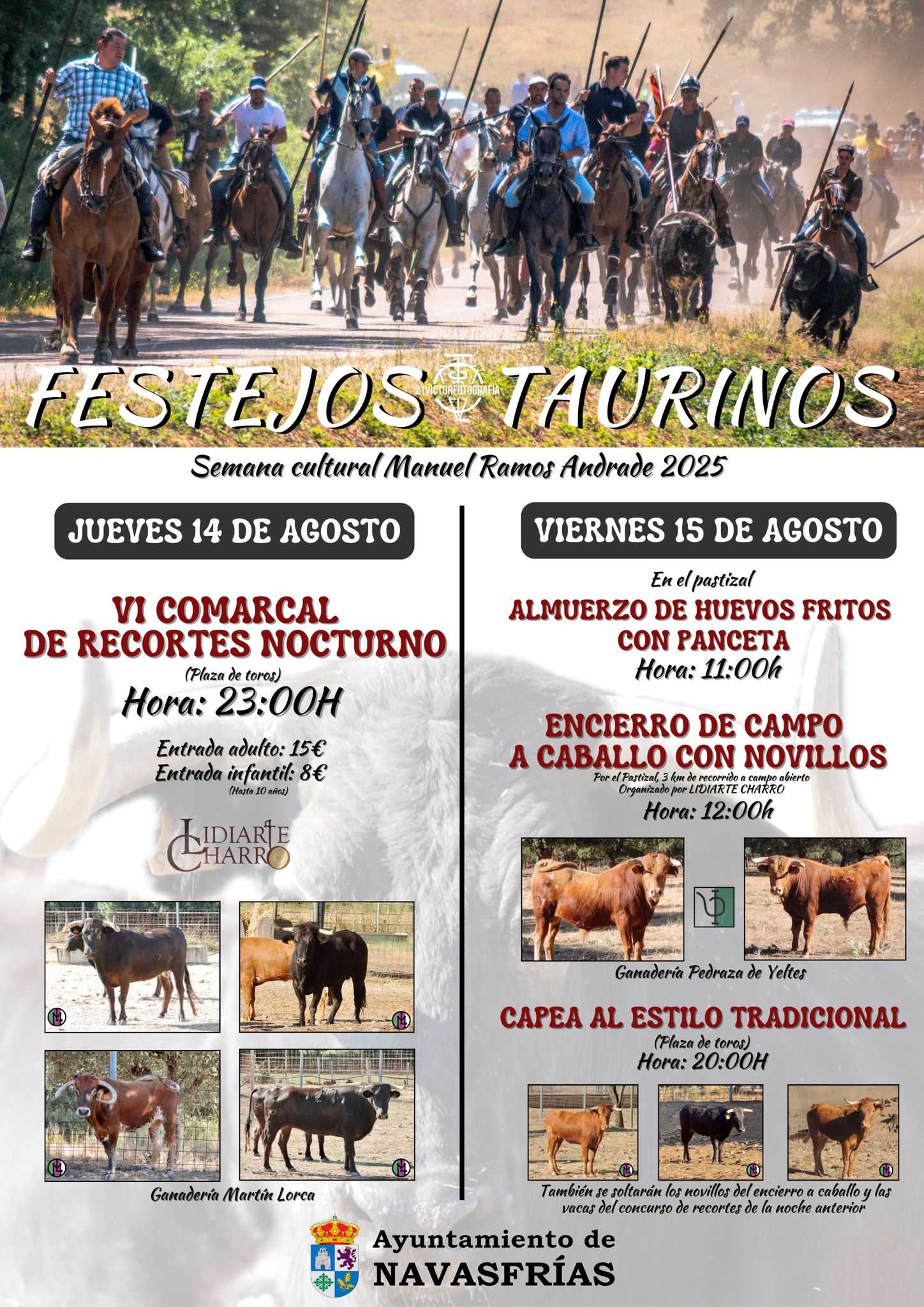Navasfrías contará con varios eventos taurinos, enmarcados en la programación de la Semana Cultural «Manuel Ramos Andrade». Son los siguientes: