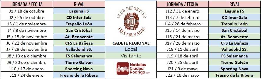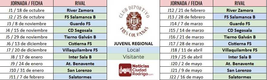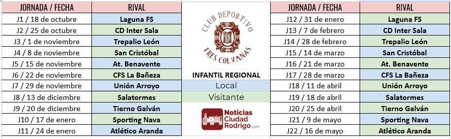 CALENDARIOS COMPLETOS/ Club Deportivo Tres Columnas Juvenil, Cadete e Infantil Regional 2025/26