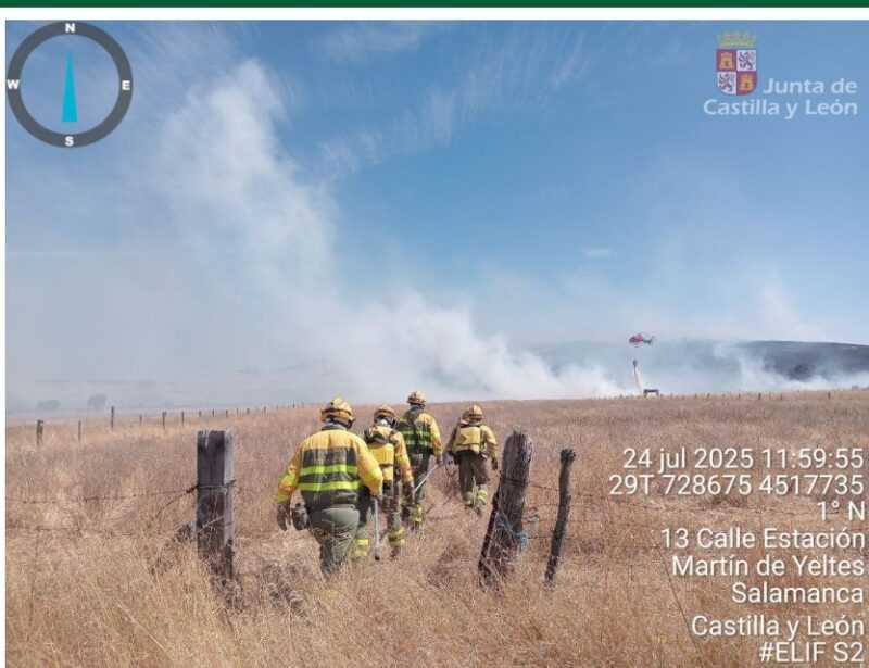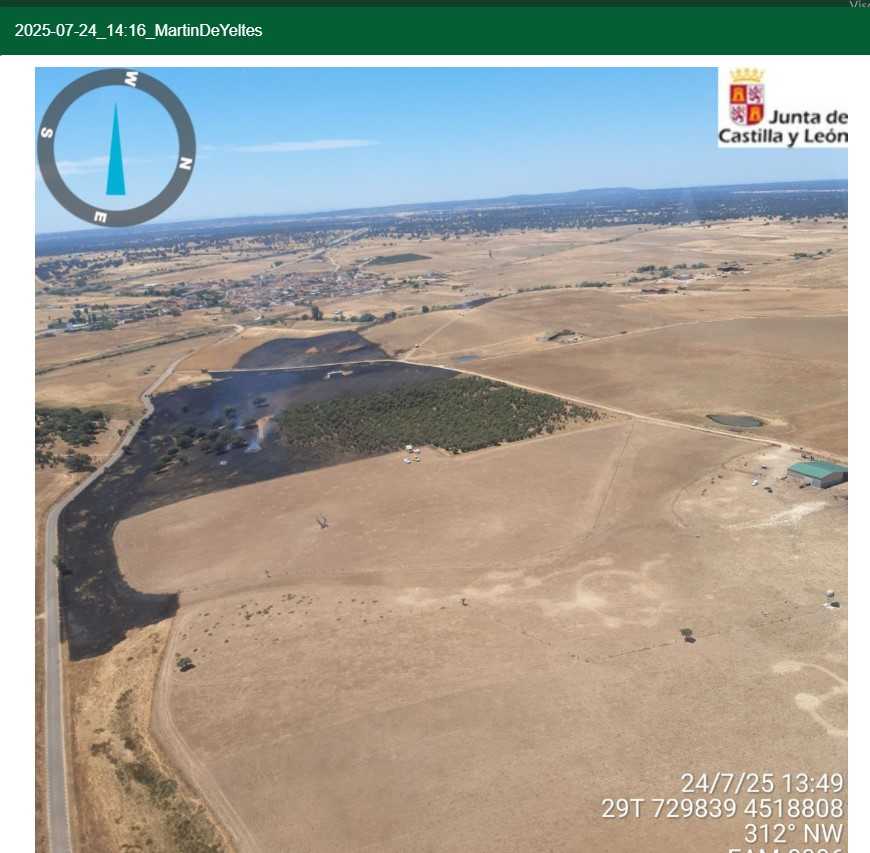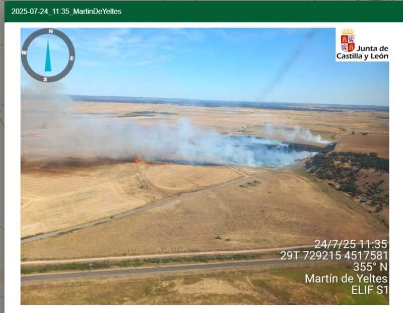 Según informa INFORCyL, la web de la Junta de Castilla y León sobre información de incendios forestales, sobre las once y cinco de la mañana ha comenzado un incendio en el término municipal de Martín de Yeltes, cerca del límite con el término de La Fuente de San Esteban y visible desde la N-620 y la autovía A62.