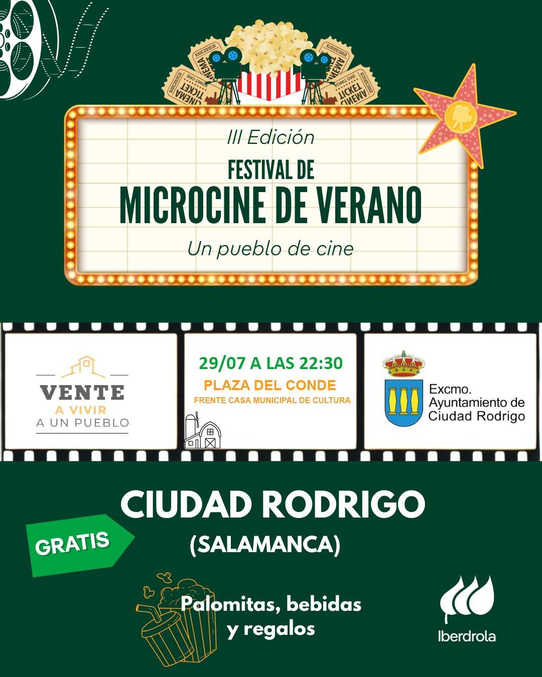 La actividad está organizada por Iberdrola, en colaboración con el Ayuntamiento de Ciudad Rodrigo. Así mismo, Desde Iberdrola realizarán una serie de regalos, como gorras, abanicos, camisetas o sombreros, a los espectadores del microcine además de establecer un servicio de aguas y refrescos a su cargo, ya que se concertará con un bar cercano a la zona de proyección junto con un servicio de palomitas para los espectadores que ofrecen a través de un palomitero.
