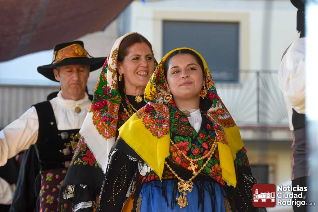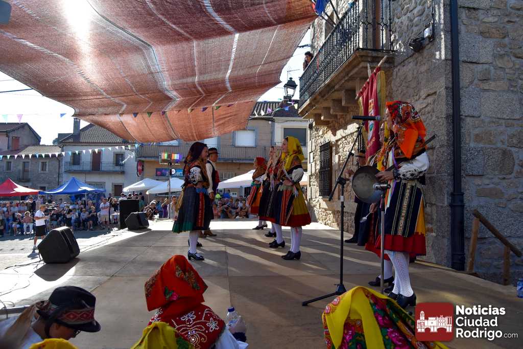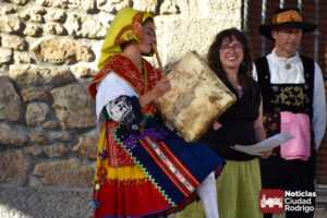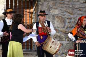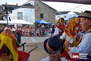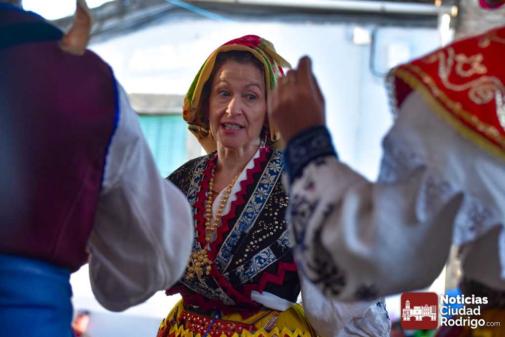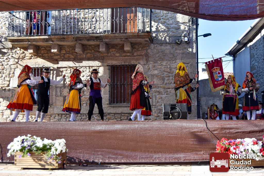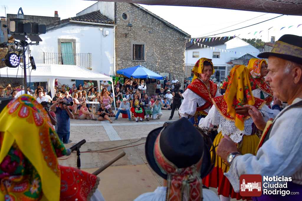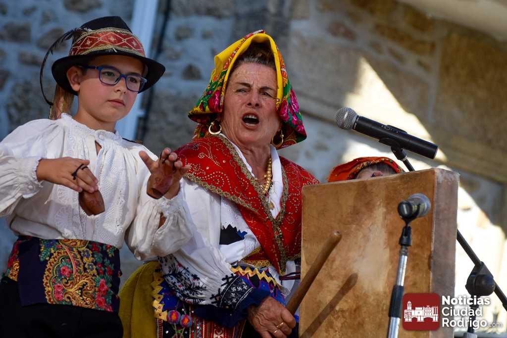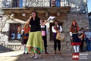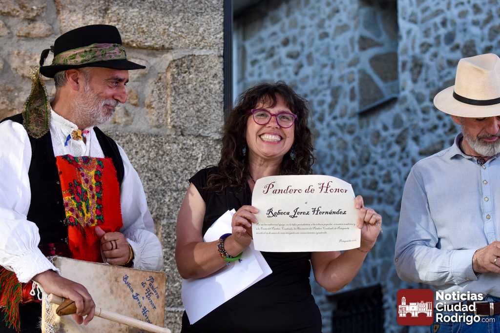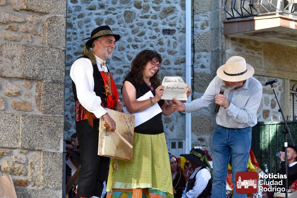 Así mismo, sobre el escenario se plasmó lo mejor del folklore de El Rebollar a través de diferentes bailes, con una evidente muestra del pandero cuadrado, pero también de las sartenes y de la gaita y tamboril. Como colofón a la tarde fue entregado el «Pandero de Honor», reconocimiento anual que se realiza en esta fiesta cultural, a la periodista mirobrigense Rebeca Jerez Hernández por su trayectoria y amplia labor de difusión del mundo rural y, en especial de la zona de El Rebollar.
