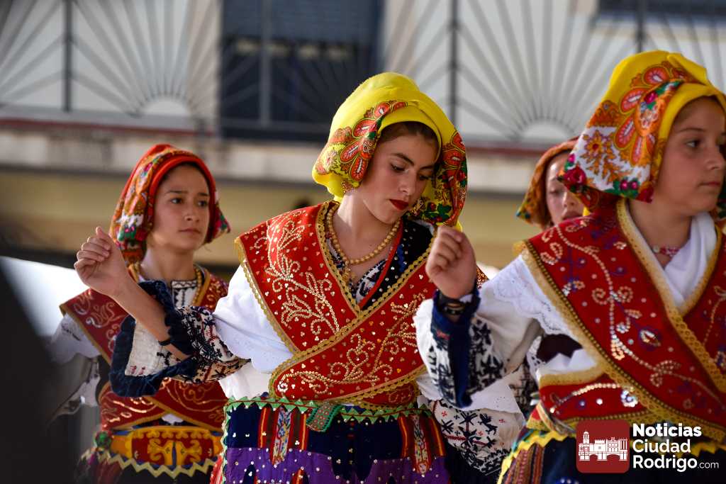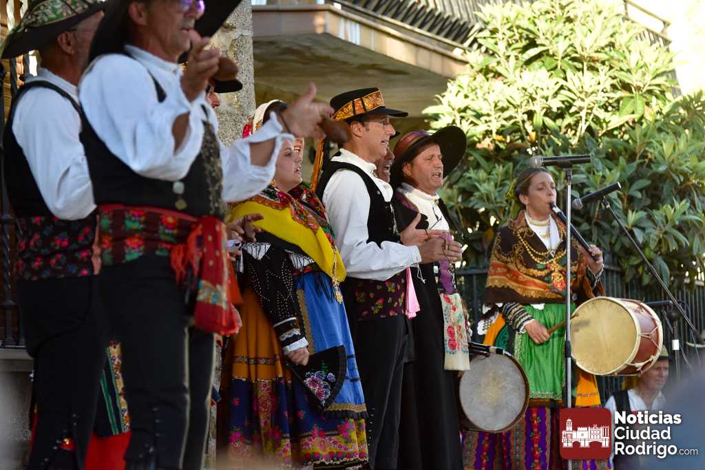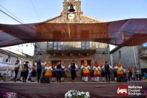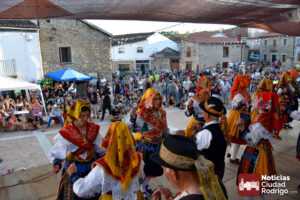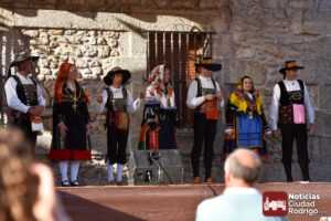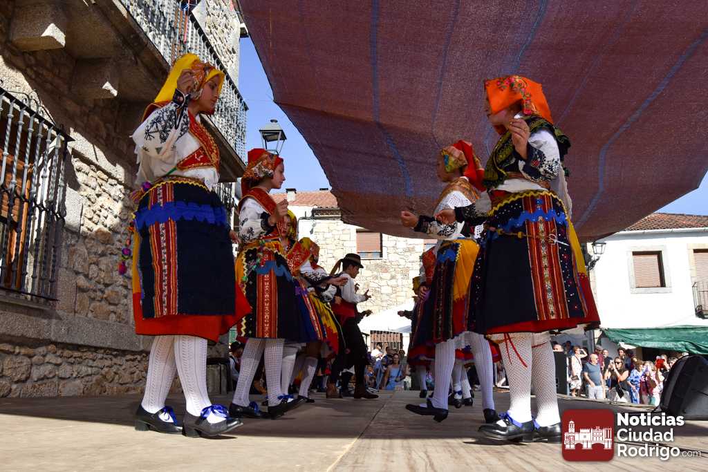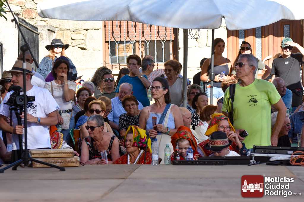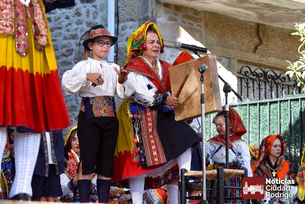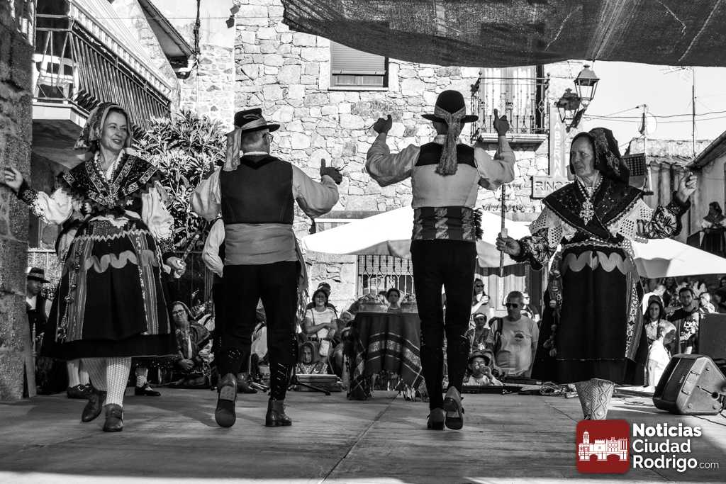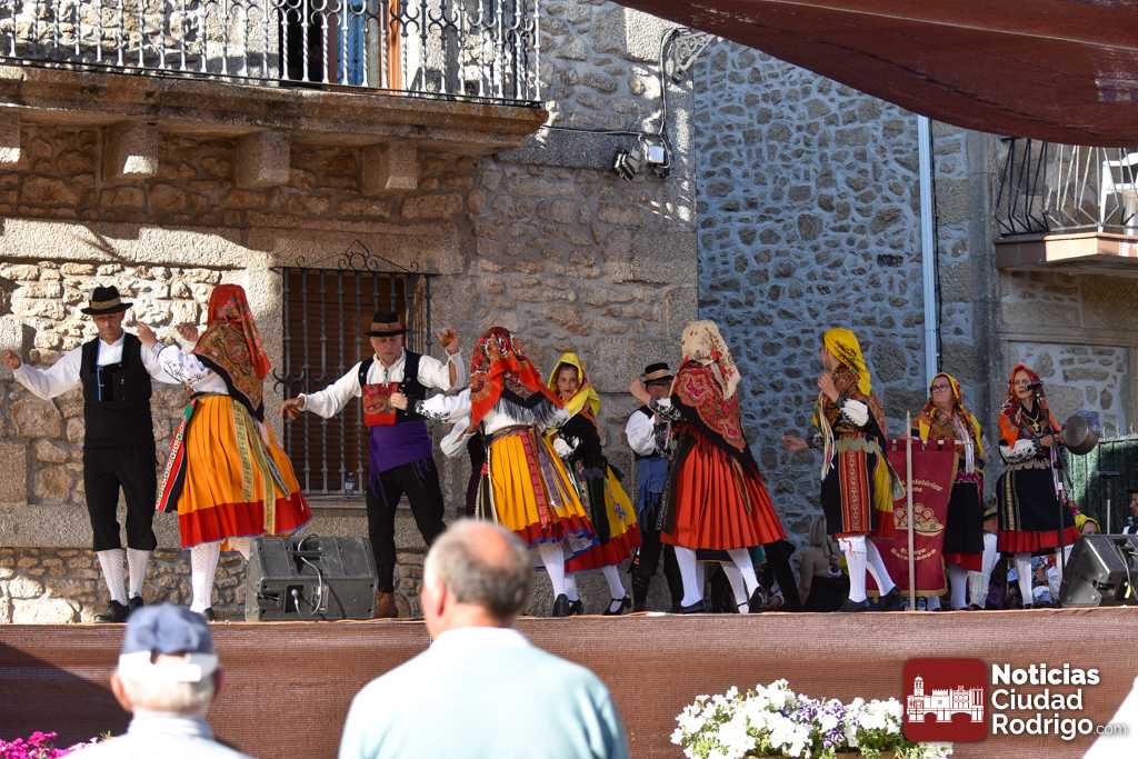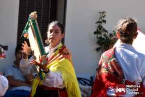 Así mismo, sobre el escenario se plasmó lo mejor del folklore de El Rebollar a través de diferentes bailes, con una evidente muestra del pandero cuadrado, pero también de las sartenes y de la gaita y tamboril. Como colofón a la tarde fue entregado el «Pandero de Honor», reconocimiento anual que se realiza en esta fiesta cultural, a la periodista mirobrigense Rebeca Jerez Hernández por su trayectoria y amplia labor de difusión del mundo rural y, en especial de la zona de El Rebollar.