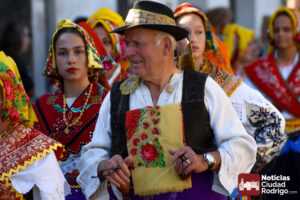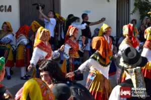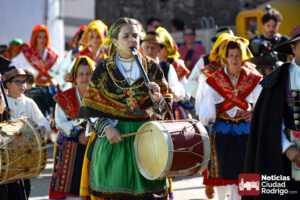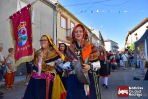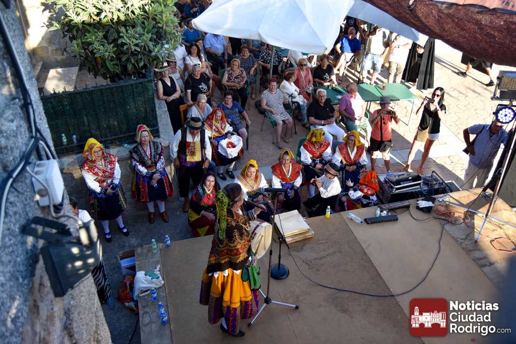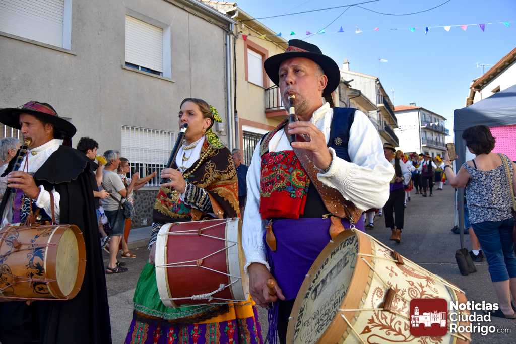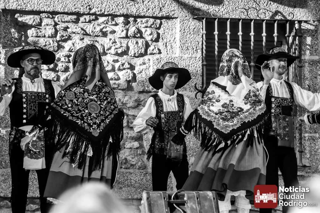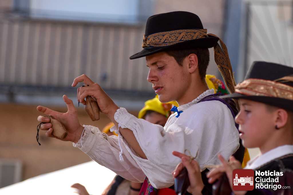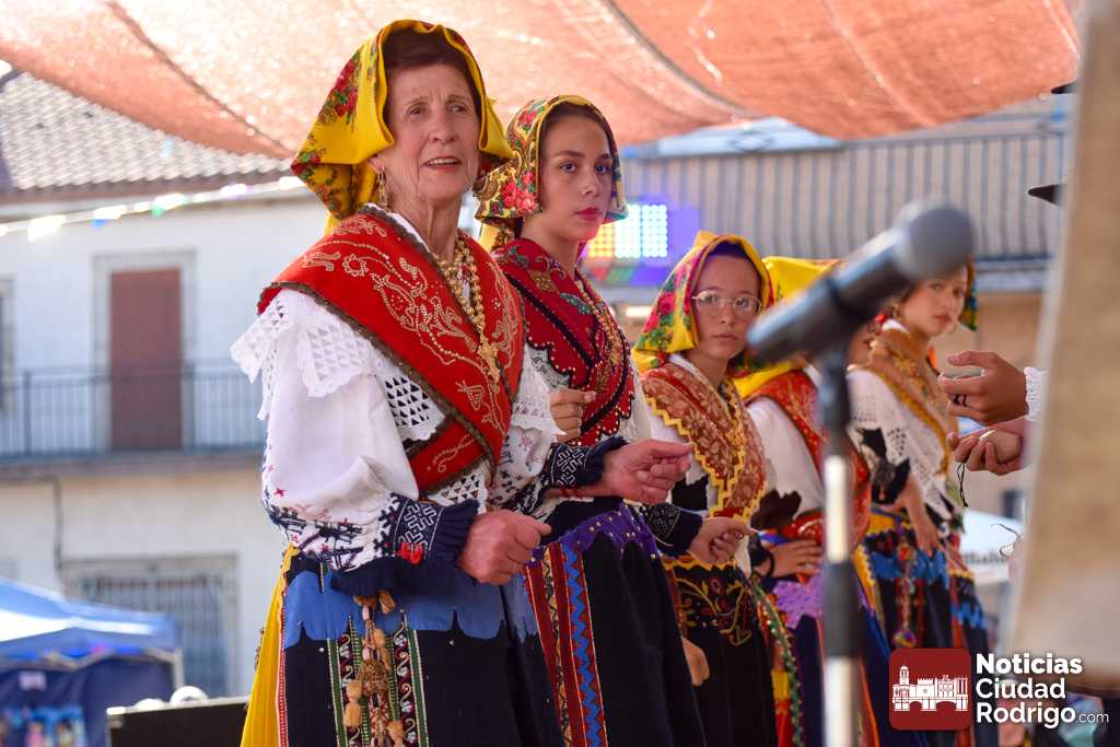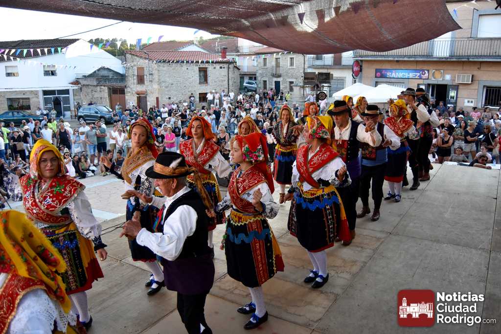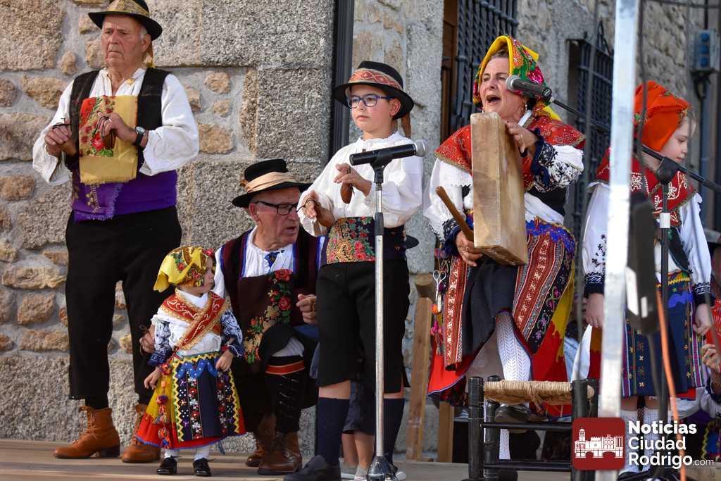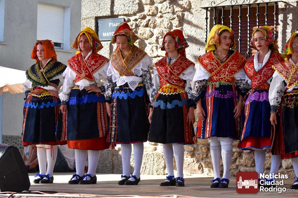 Así mismo, sobre el escenario se plasmó lo mejor del folklore de El Rebollar a través de diferentes bailes, con una evidente muestra del pandero cuadrado, pero también de las sartenes y de la gaita y tamboril. Como colofón a la tarde fue entregado el «Pandero de Honor», reconocimiento anual que se realiza en esta fiesta cultural, a la periodista mirobrigense Rebeca Jerez Hernández por su trayectoria y amplia labor de difusión del mundo rural y, en especial de la zona de El Rebollar.