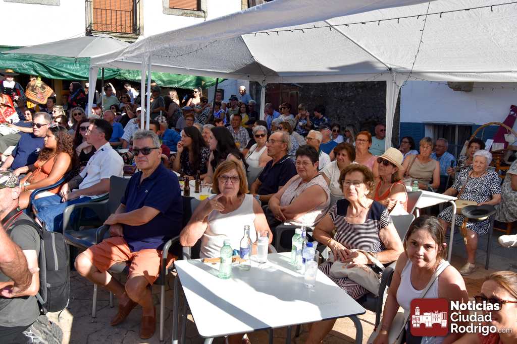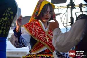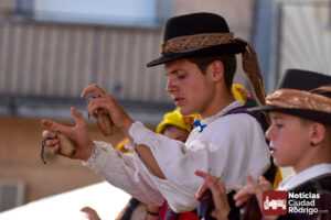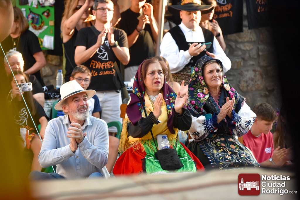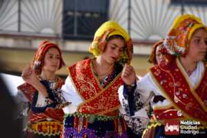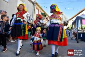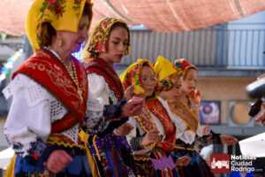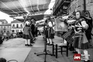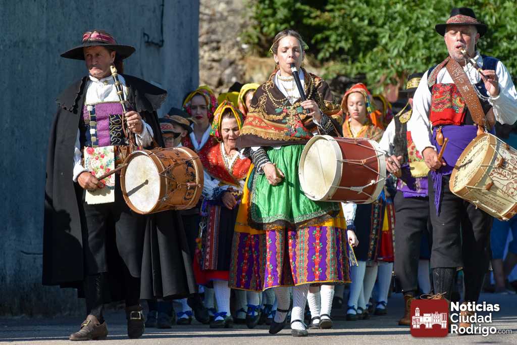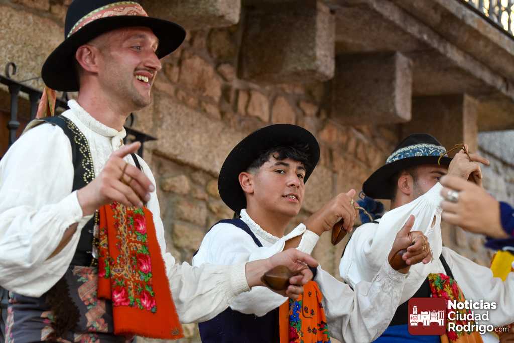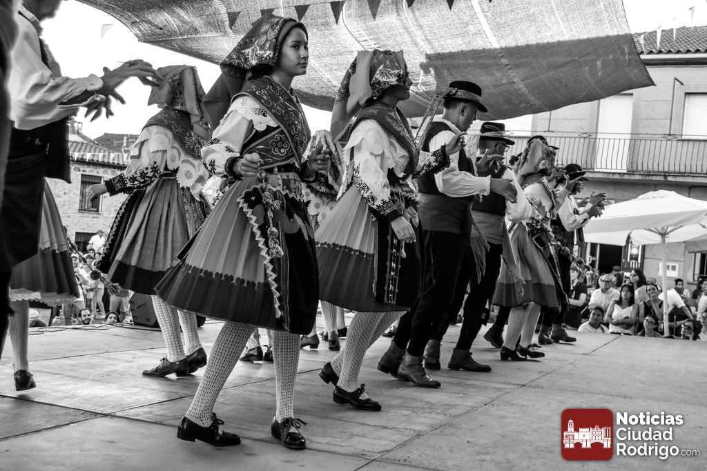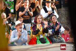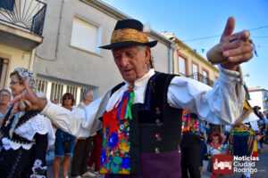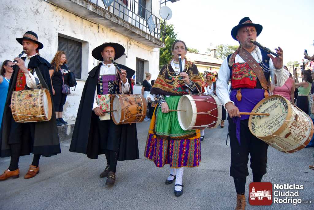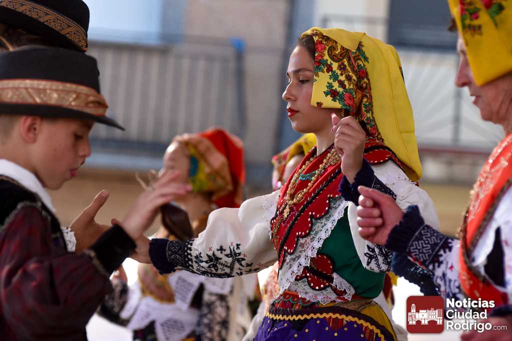 Así mismo, sobre el escenario se plasmó lo mejor del folklore de El Rebollar a través de diferentes bailes, con una evidente muestra del pandero cuadrado, pero también de las sartenes y de la gaita y tamboril. Como colofón a la tarde fue entregado el «Pandero de Honor», reconocimiento anual que se realiza en esta fiesta cultural, a la periodista mirobrigense Rebeca Jerez Hernández por su trayectoria y amplia labor de difusión del mundo rural y, en especial de la zona de El Rebollar.
