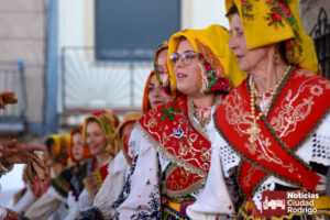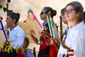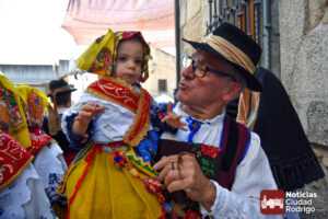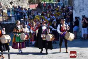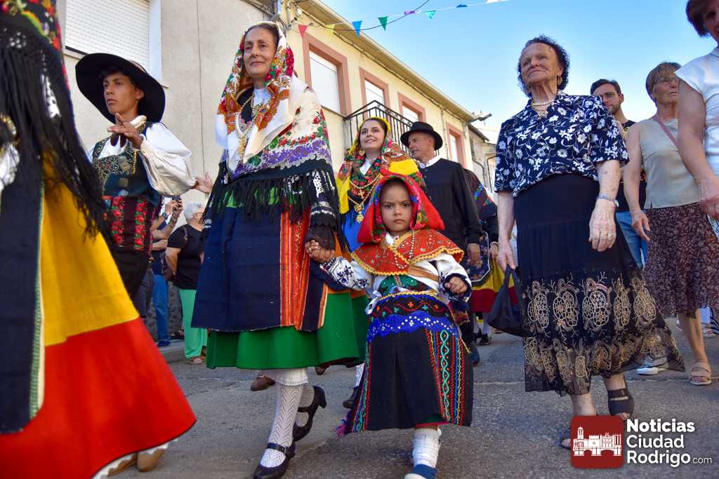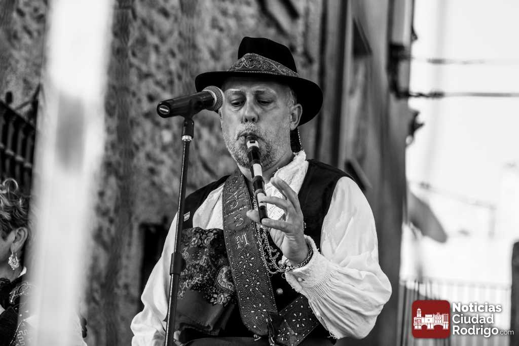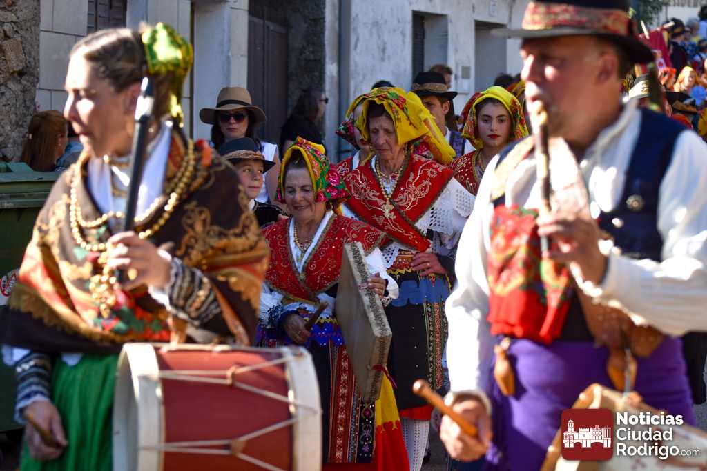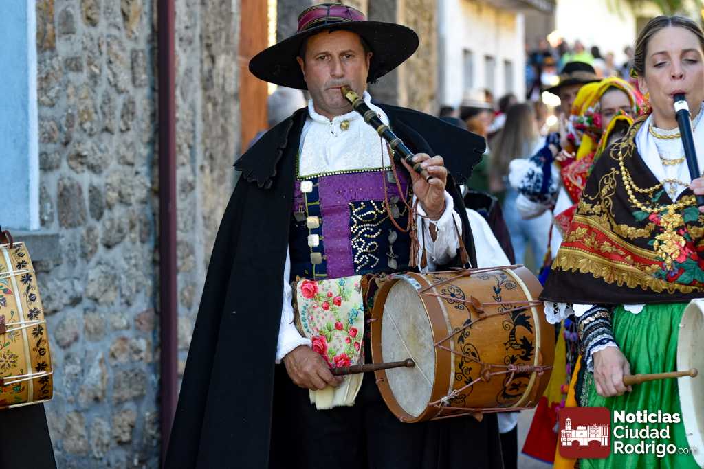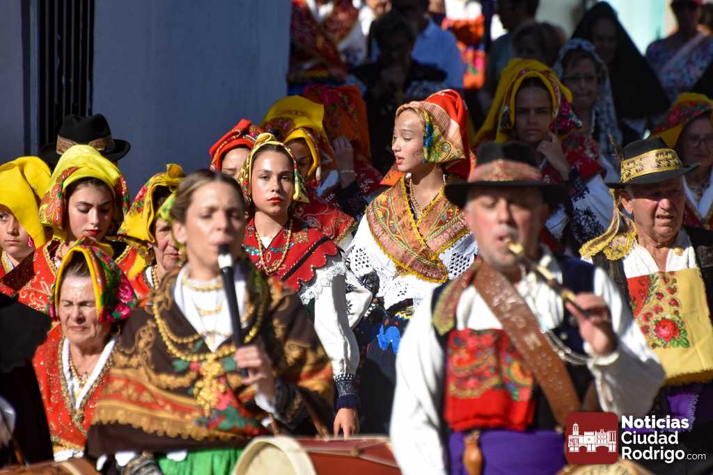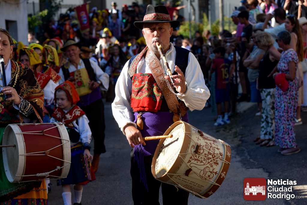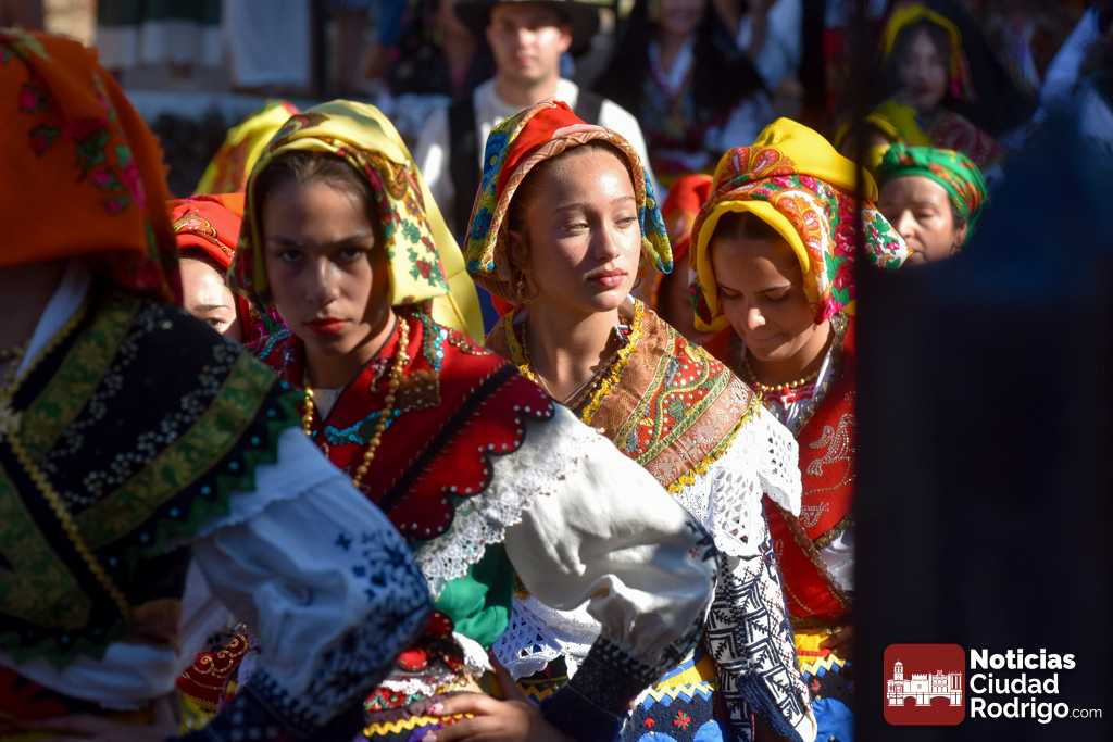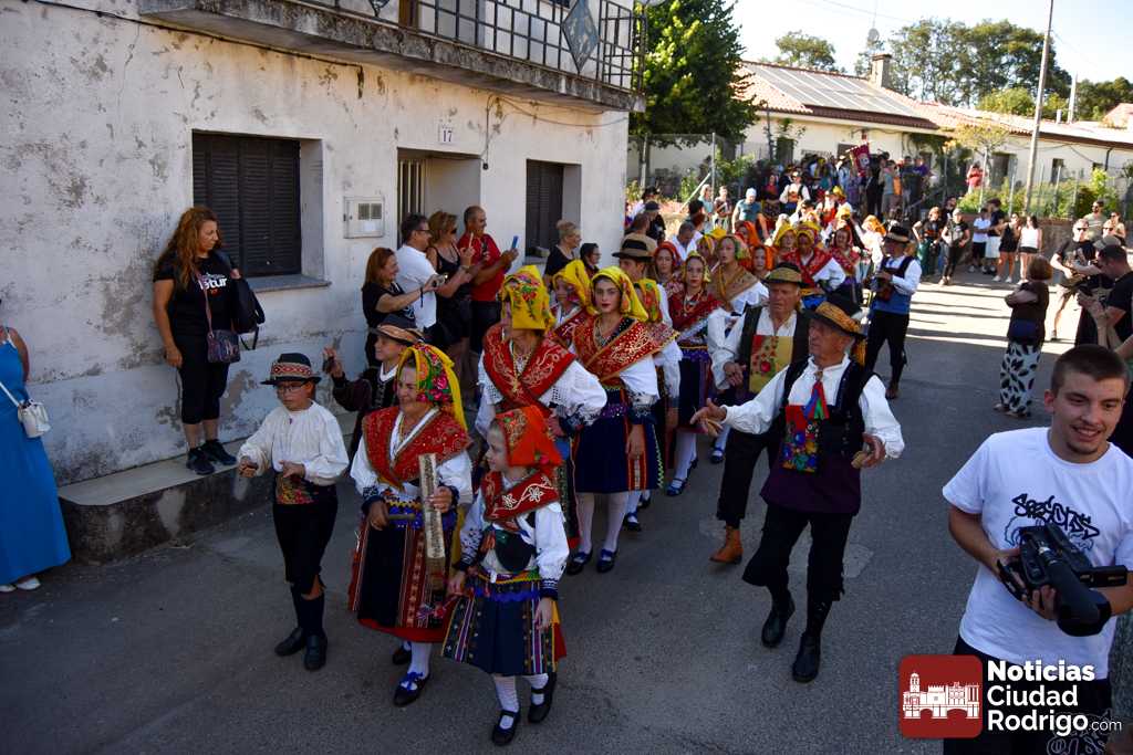 Así mismo, sobre el escenario se plasmó lo mejor del folklore de El Rebollar a través de diferentes bailes, con una evidente muestra del pandero cuadrado, pero también de las sartenes y de la gaita y tamboril. Como colofón a la tarde fue entregado el «Pandero de Honor», reconocimiento anual que se realiza en esta fiesta cultural, a la periodista mirobrigense Rebeca Jerez Hernández por su trayectoria y amplia labor de difusión del mundo rural y, en especial de la zona de El Rebollar.