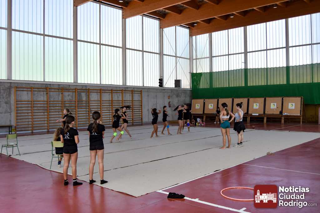 La primera matinal del Campamento de Gimnasia Rítmica a cargo del Club Ítaca de Ciudad Rodrigo se desarrolló con medio centenar de niñas de diferentes edades en el Multiusos José Ángel Gómez. Un comienzo bastante lúdico, pero que tuvo también su parte rigurosa al iniciar los ensayos coreográficos de cara a la exhibición el 1 de agosto en los Jardines de Bolonia a las 20:00 h.