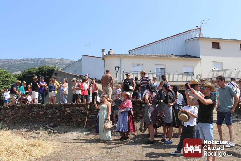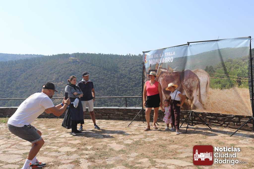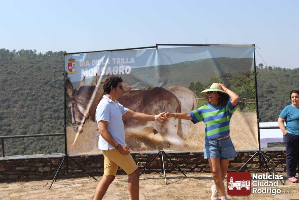 Las Eras de Monsagro reviven cada año el oficio de trillar en una fiesta veraniega que congrega a cientos de personas. Desde las once de la mañana de este 2 de agosto, un trillo con dos mulos ofrece la posibilidad a todo el que quiere de comprobar cómo se realiza antiguamente la trilla. Los asistentes se hacen fotografías en los “photocall” preparados para ello, hay música de charanga, la gente baila e incluso los más pequeños aprovechan la afluencia para poner puestos donde venden objetos de manualidades realizados por ellos mismos.
