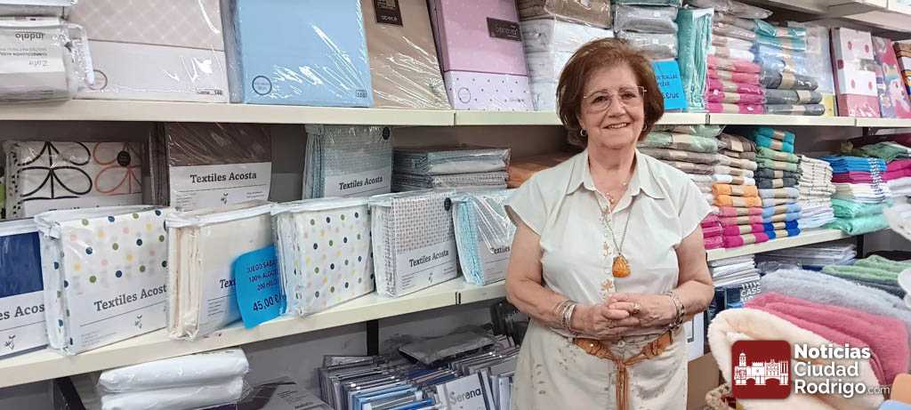 Hablamos con la matriarca de la familia Acosta Rubio (Textiles Acosta), que el próximo lunes, en la víspera del Martes Mayor recibirá un homenaje por su dedicación al comercio mirobrigense. La entrega, por parte del Ayuntamiento de Ciudad Rodrigo, tendrá lugar el lunes 11 de agosto a las diez y media de la noche en la plaza del Buen Alcalde.