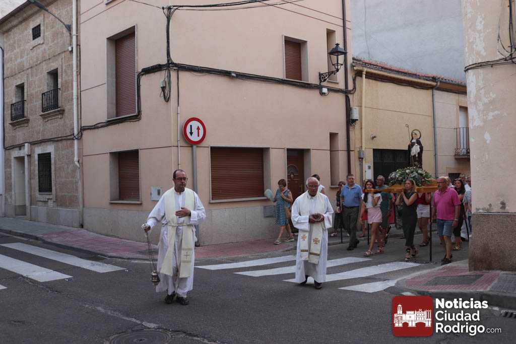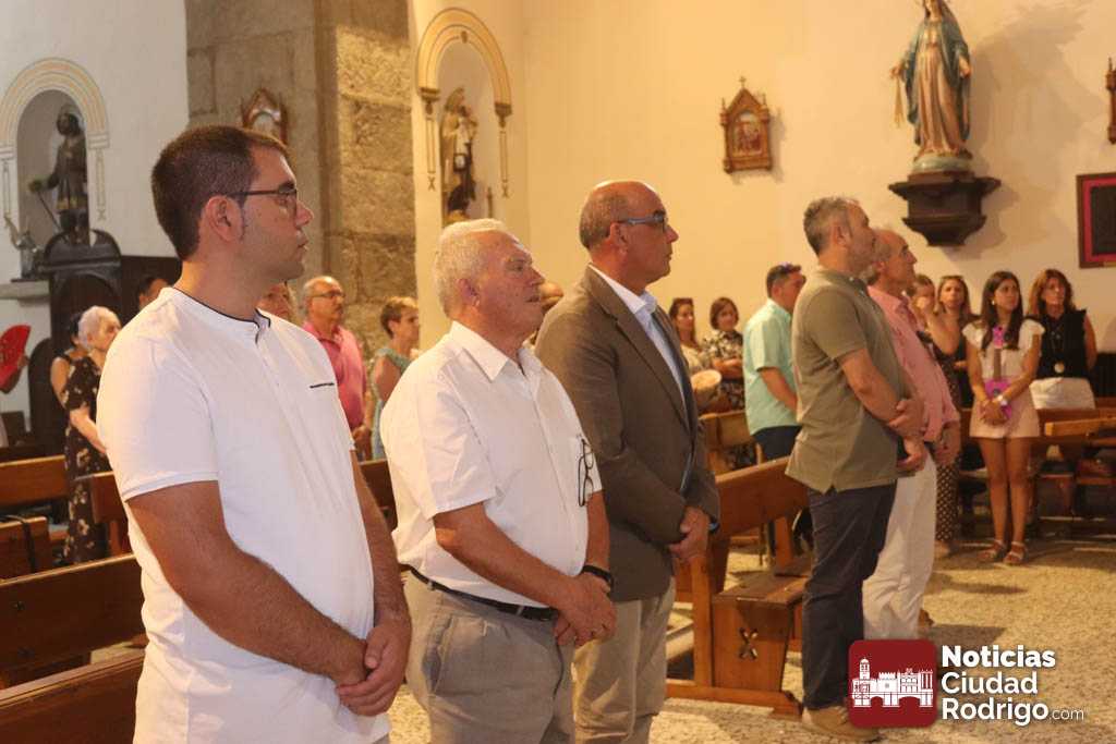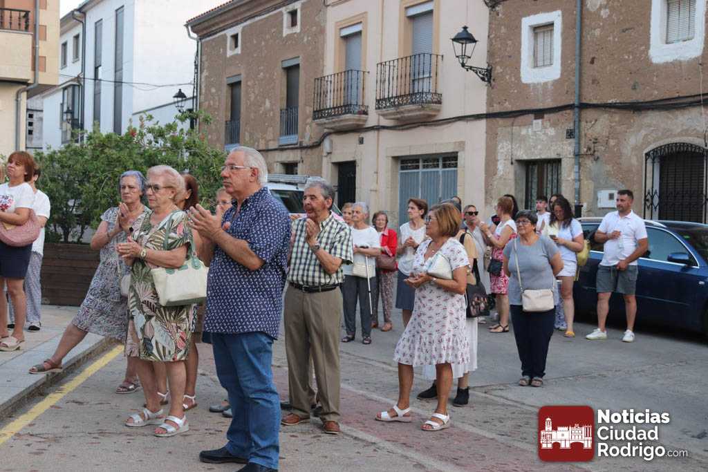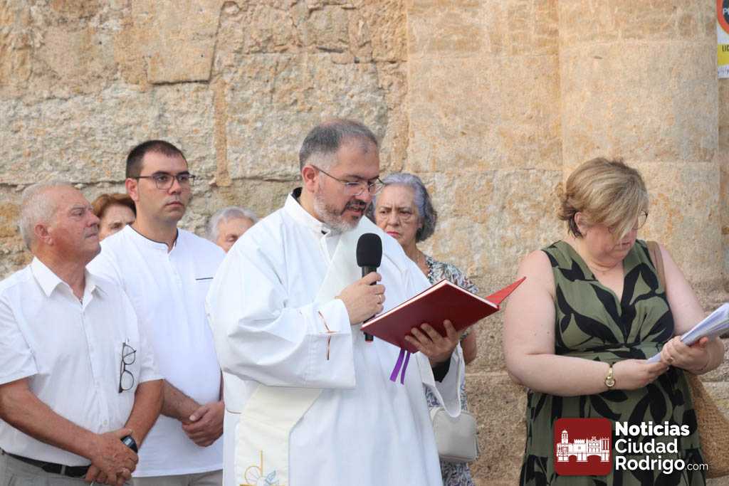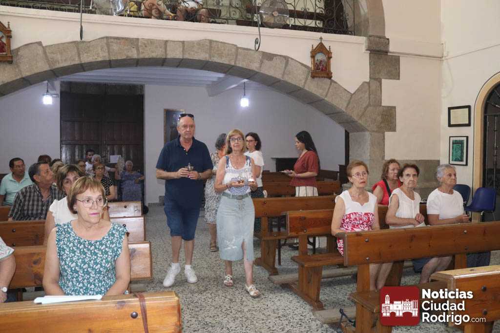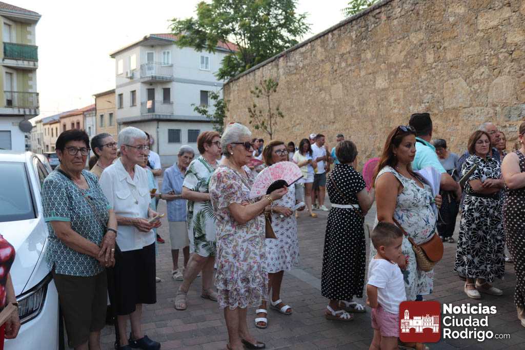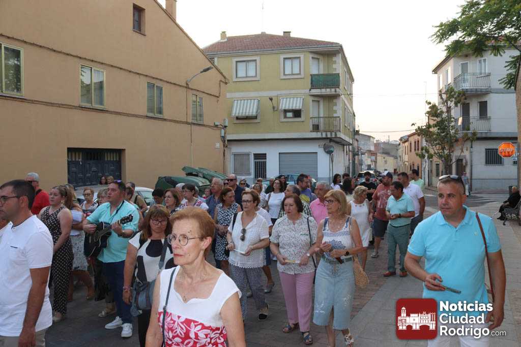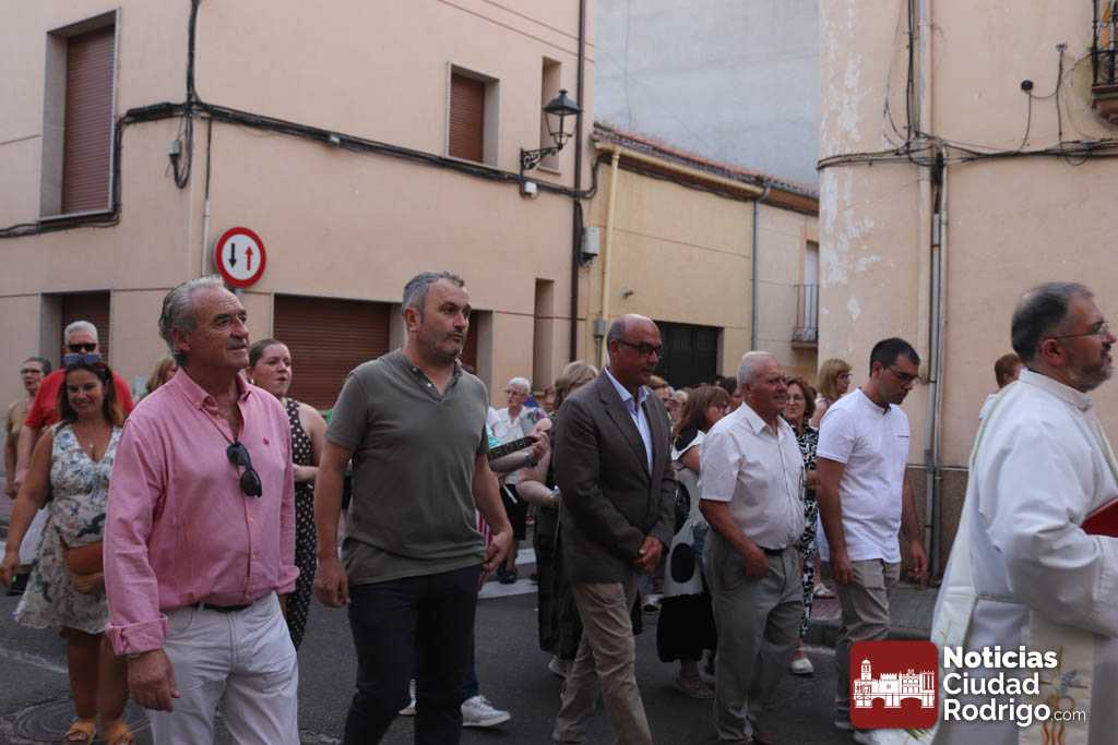 En la organización de los actos también ha participado la asociación vecinal. Todo ha comenzado con una misa, a las ocho de la tarde, concelebrada por los sacerdotes Víctor Sevillano, Rafael Caño, Joaquín Pino y el diácono Daniel Mielgo, que ha predicado en la homilía. Después de la celebración litúrgica, ha tenido lugar la procesión desde el templo parroquial de San Andrés al convento de Santa Clara, donde ha tenido lugar una oración. Este convento, precisamente, se encuentra vacío y, entre las peticiones, se ha rogado por la vuelta de las Madres Clarisas a este convento abierto en Ciudad Rodrigo desde el siglo XIII.