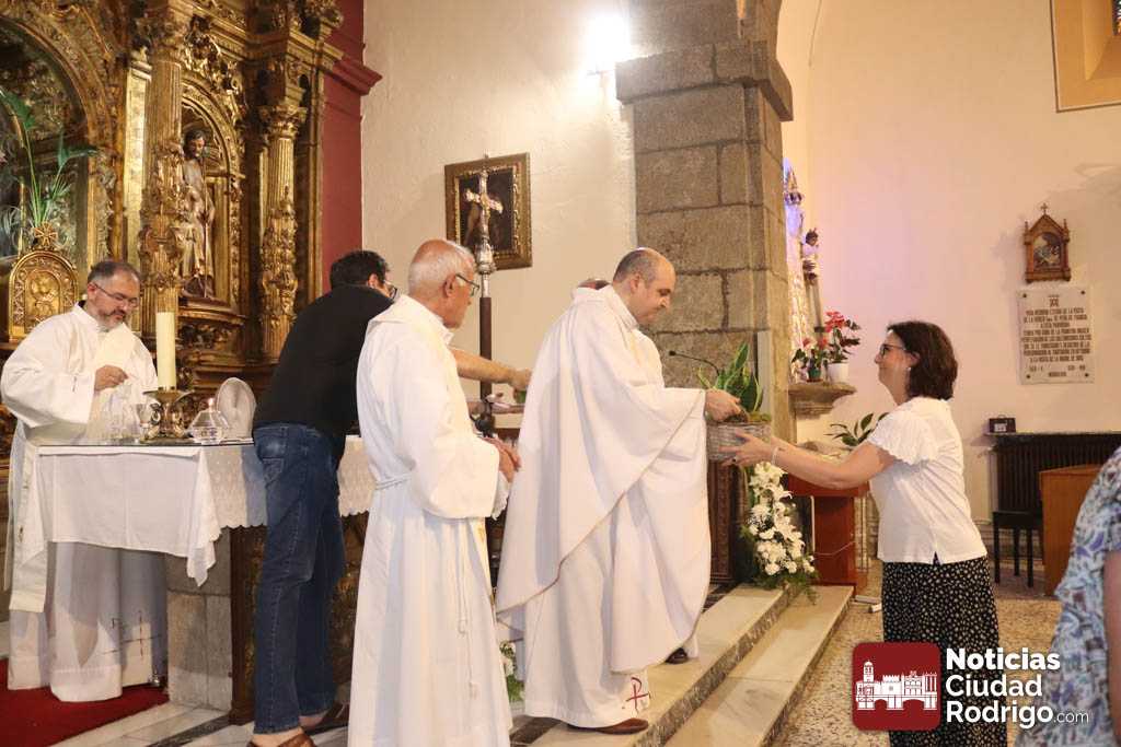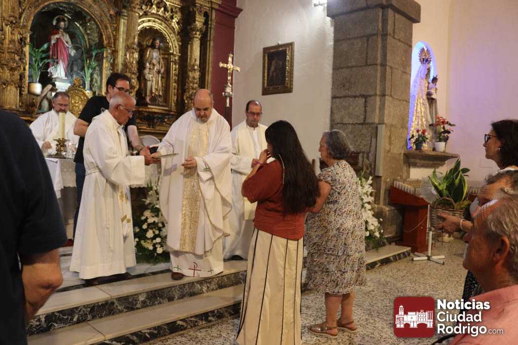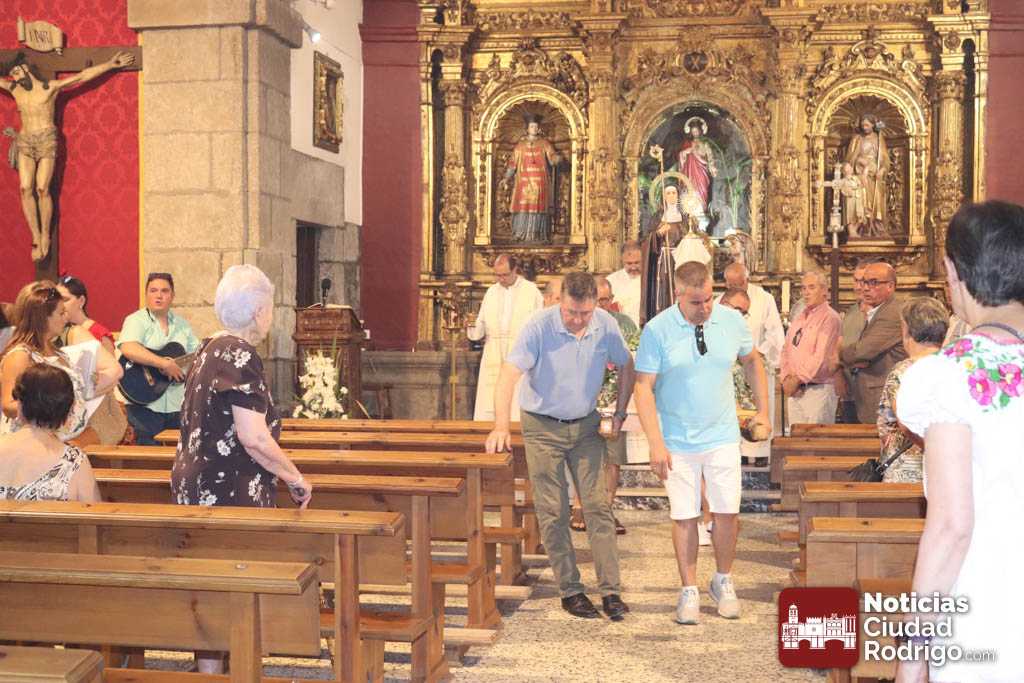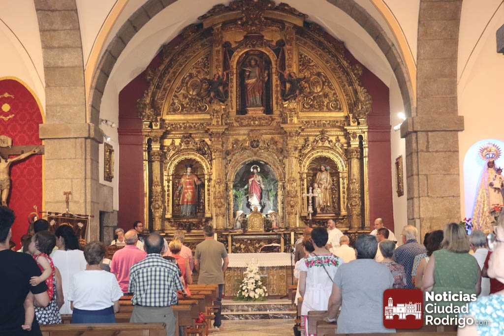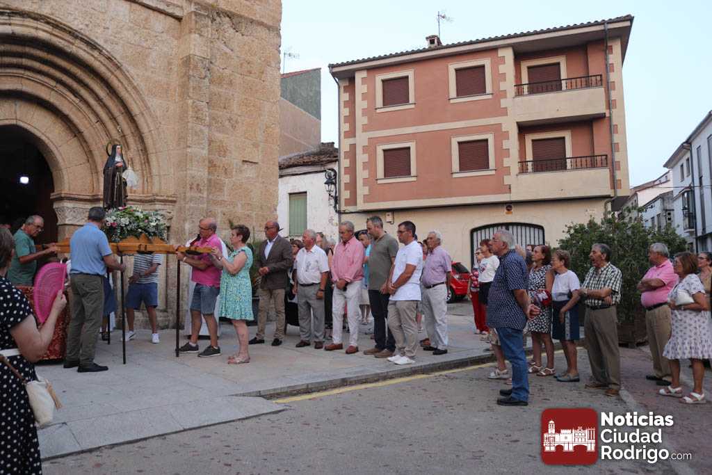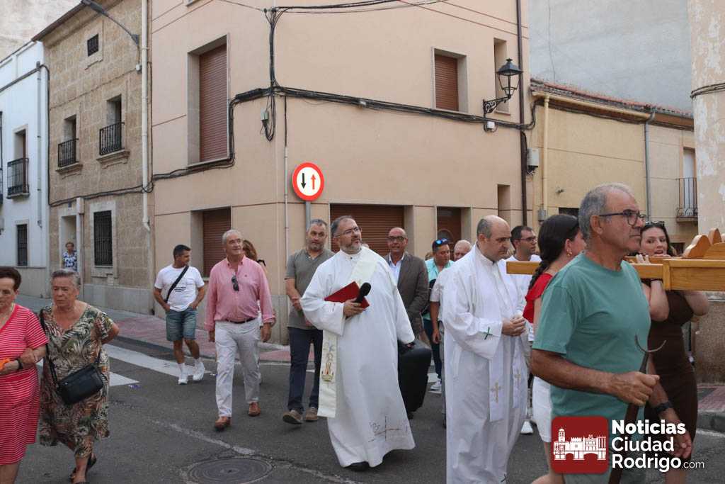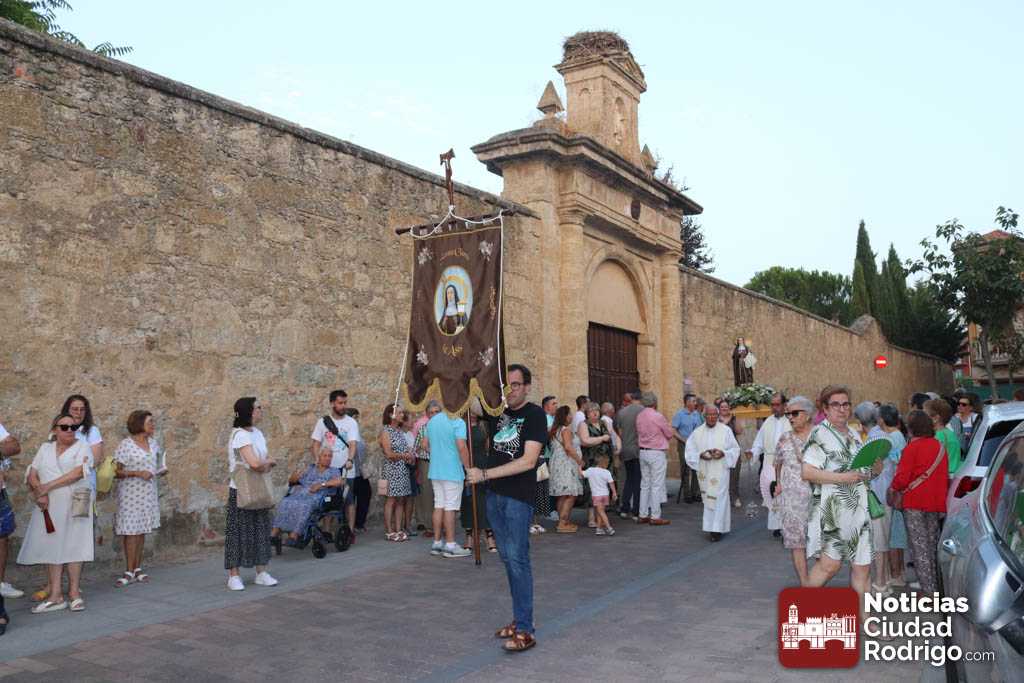 En la organización de los actos también ha participado la asociación vecinal. Todo ha comenzado con una misa, a las ocho de la tarde, concelebrada por los sacerdotes Víctor Sevillano, Rafael Caño, Joaquín Pino y el diácono Daniel Mielgo, que ha predicado en la homilía. Después de la celebración litúrgica, ha tenido lugar la procesión desde el templo parroquial de San Andrés al convento de Santa Clara, donde ha tenido lugar una oración. Este convento, precisamente, se encuentra vacío y, entre las peticiones, se ha rogado por la vuelta de las Madres Clarisas a este convento abierto en Ciudad Rodrigo desde el siglo XIII.