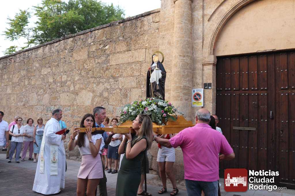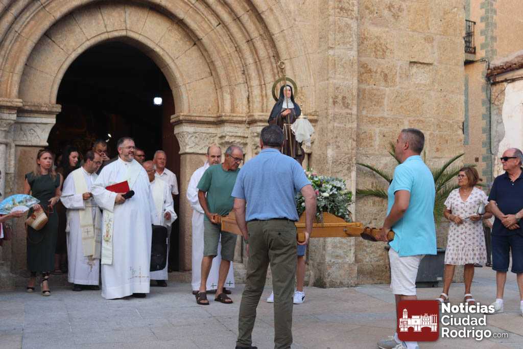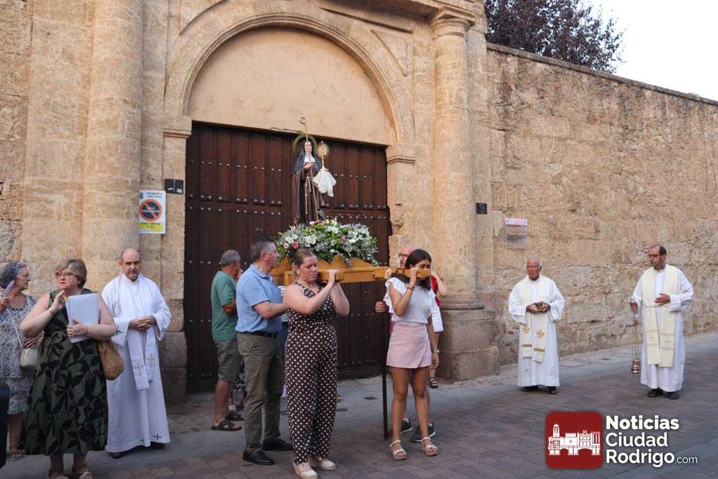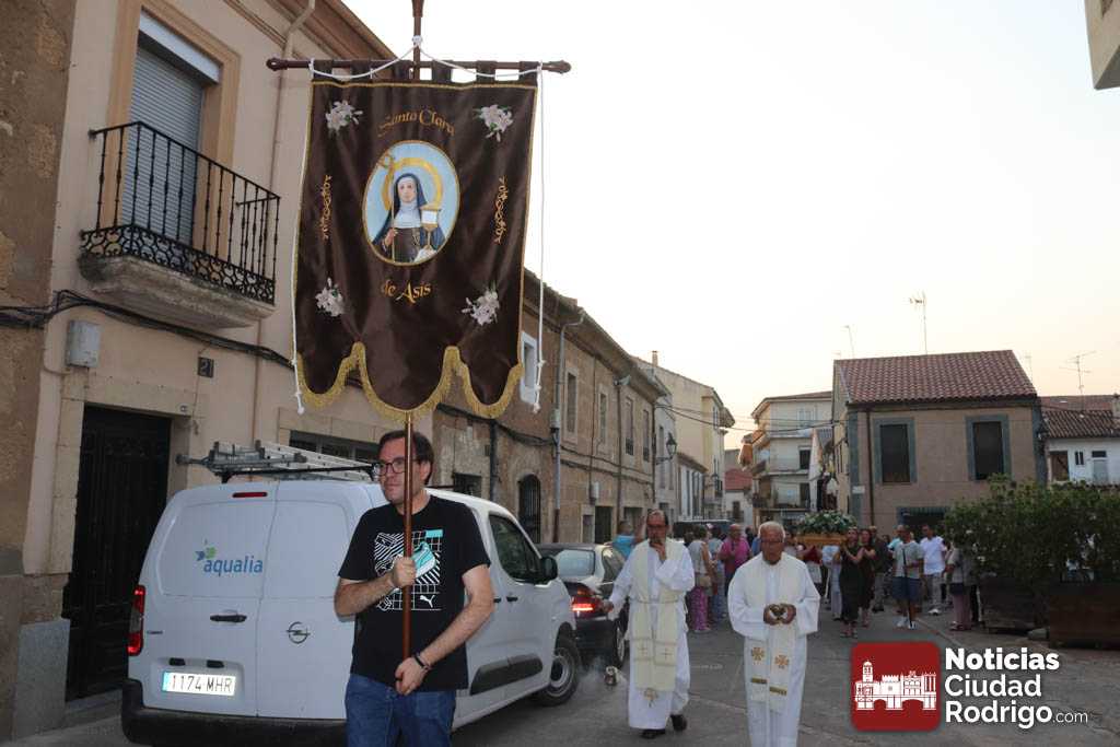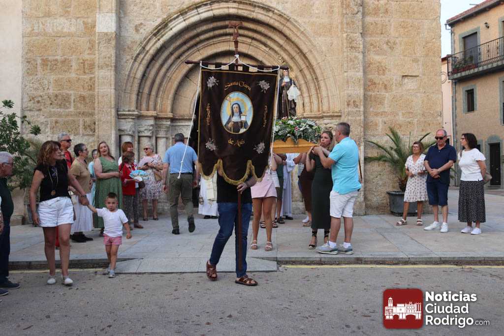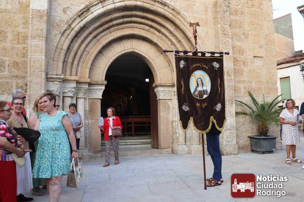 Con motivo de la festividad de Santa Clara, hoy 11 de agosto, la imagen de Santa Clara ha salido en procesión por las calles de Ciudad Rodrigo. Los actos son organizados por la parroquia de San Andrés, donde los jóvenes compraron una figura de esta santa en febrero de 2023.