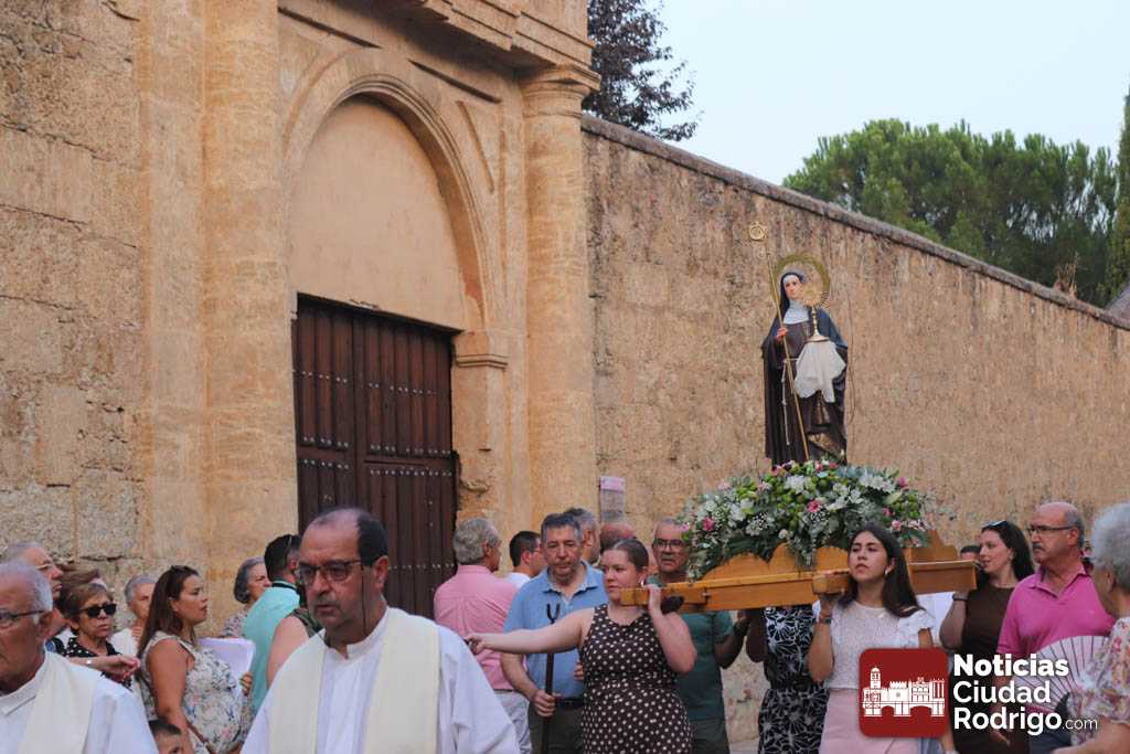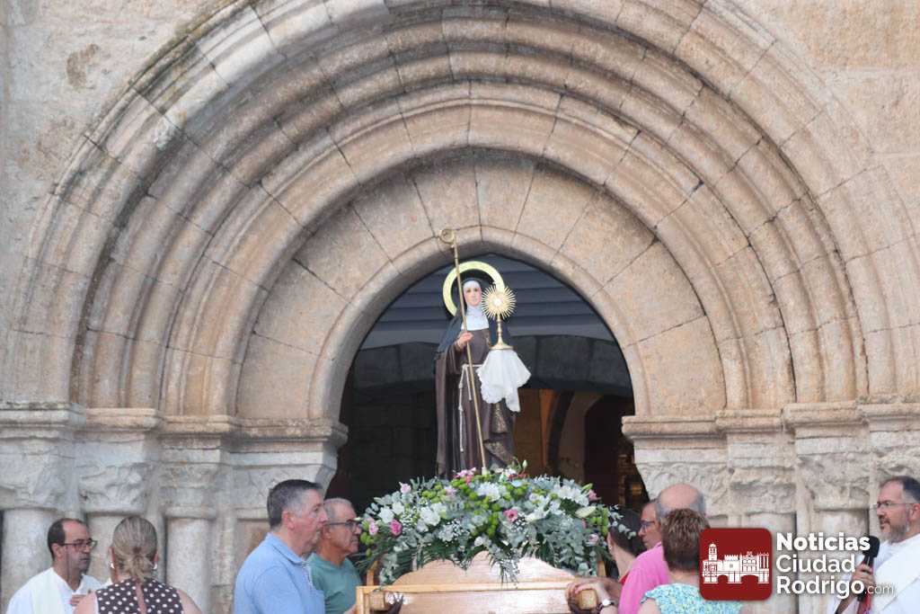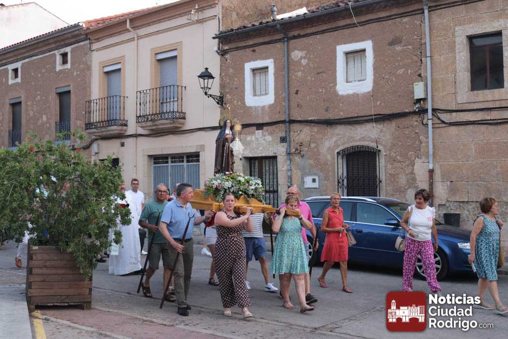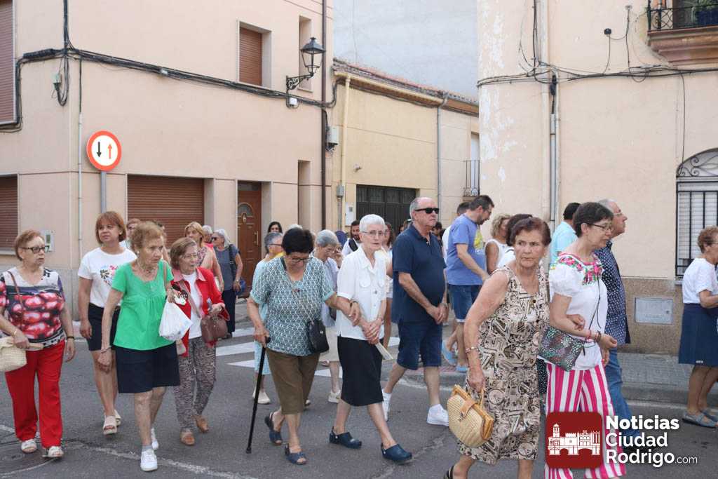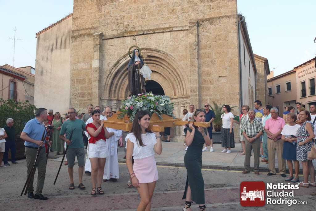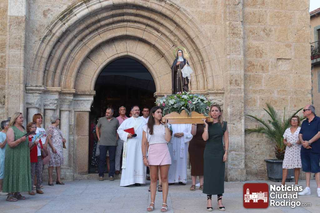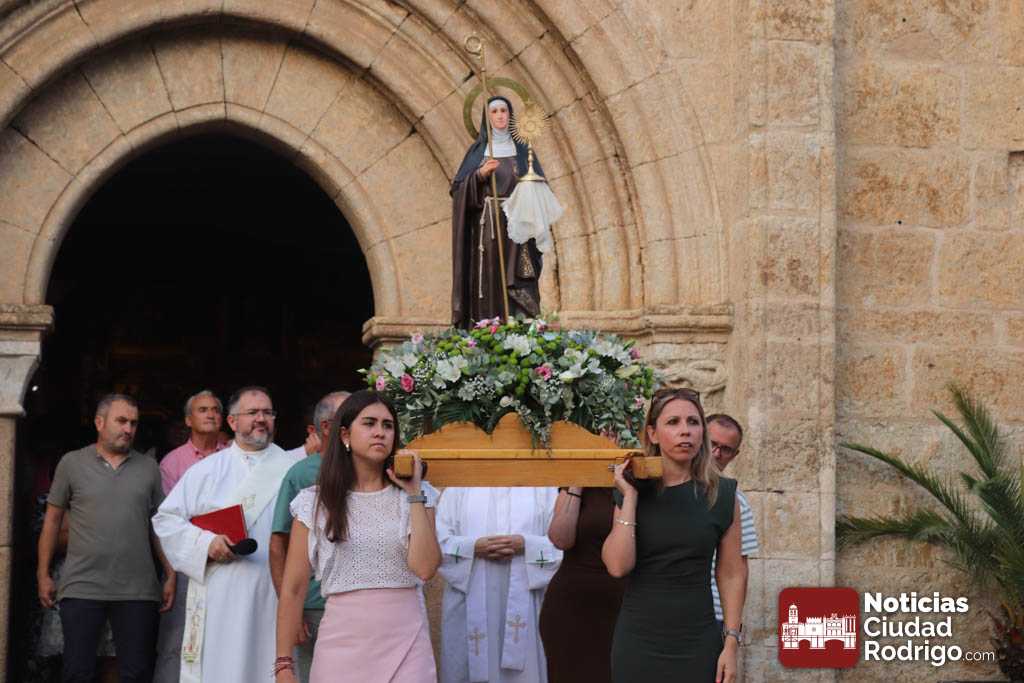 Con motivo de la festividad de Santa Clara, hoy 11 de agosto, la imagen de Santa Clara ha salido en procesión por las calles de Ciudad Rodrigo. Los actos son organizados por la parroquia de San Andrés, donde los jóvenes compraron una figura de esta santa en febrero de 2023.