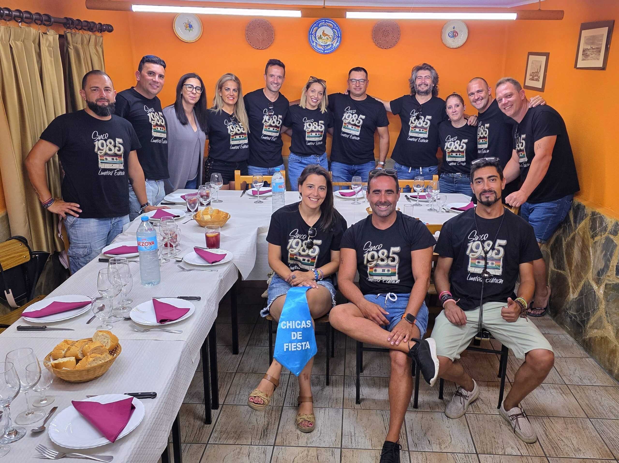 Hoy es un día de celebración para los nacidos en 1985 de Sancti Spíritus. Un buen número de ellos se han logrado reunir para celebrar la vida y recordar tiempos pasados vividos juntos. Los organizadores han sido un matrimonio de quintos, Alejandro y Cristina. Y también ha sido posible gracias a un grupo de WhatsApp creado por María Jesús en 2018. Los cumpleañeros han venido a Sancti Spíritus hoy desde distintos puntos de España, como el País Vasco o Madrid. Está siendo una hermosa jornada que siempre recordarán. Próxima parada:¡Los 50!