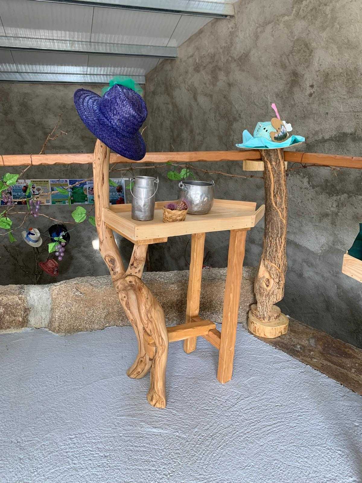 Además, ha habido una exposición de mesas donde se elaboraban los quesos, realizadas por la artesana Vicenta de La Bouza, con patas elaboradas con madera de olivo y el resto de pino sin tratar para poder hacer el queso.