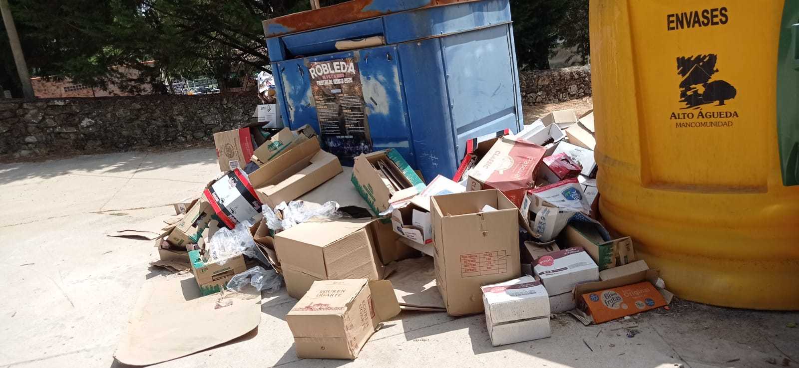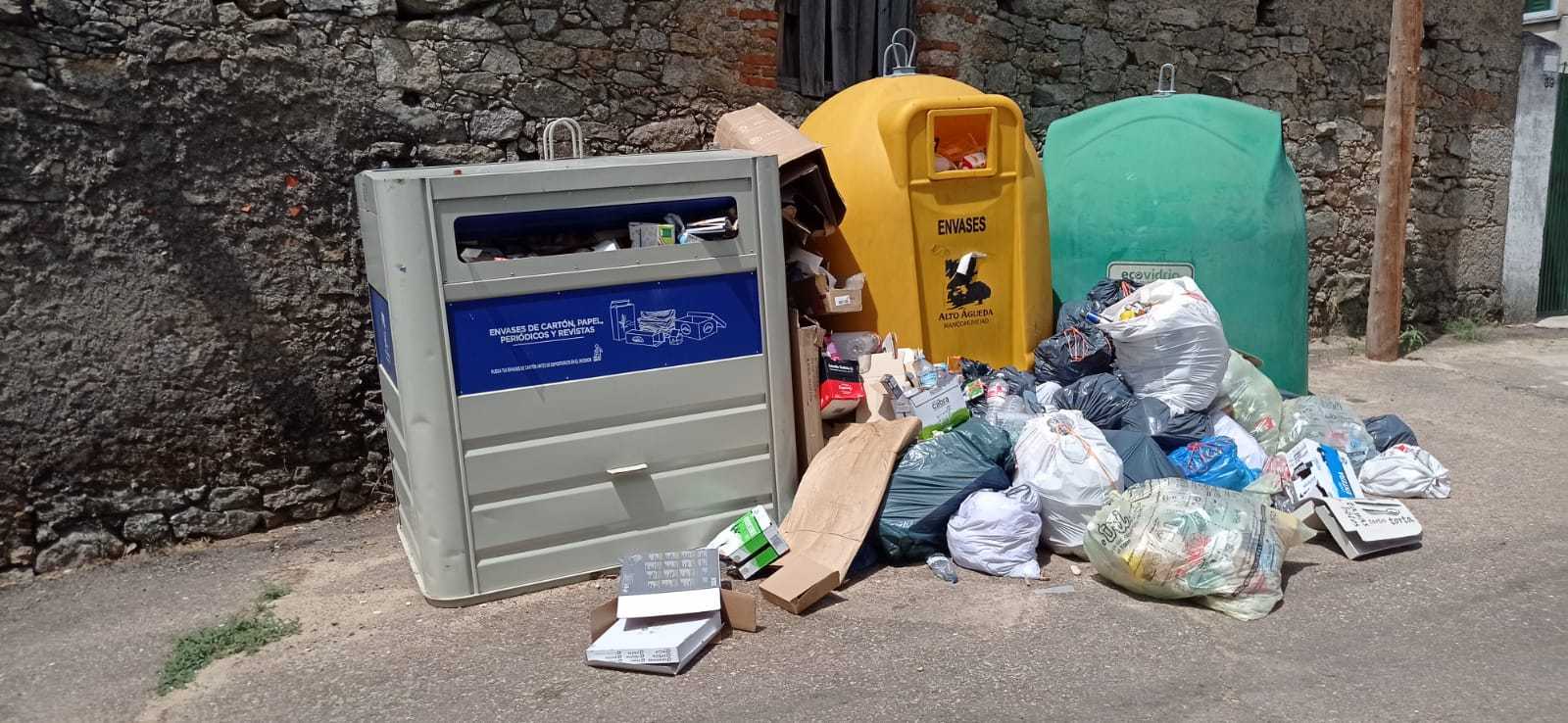 Quejas vecinales por la acumulación de residuos en los contenedores de reciclaje de diversas localidades de poblaciones de la mancomunidad Alto Águeda.