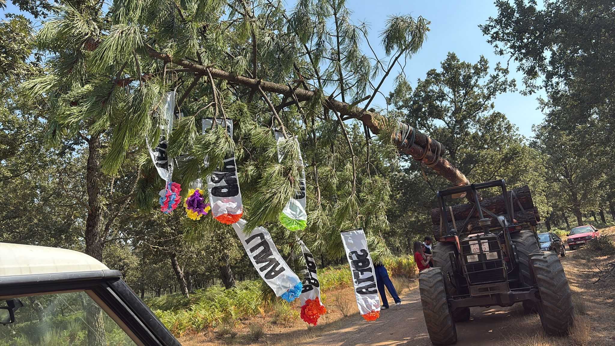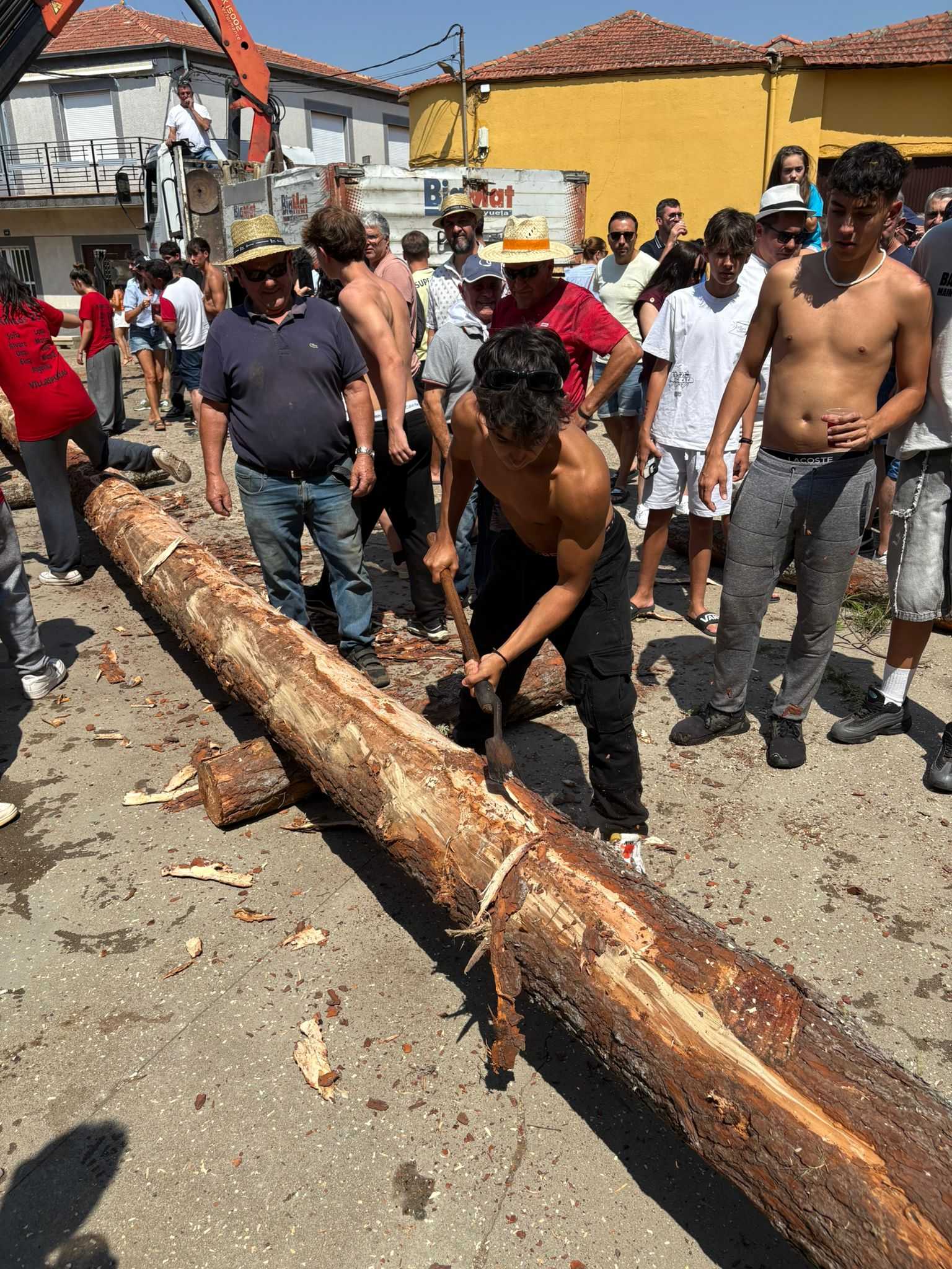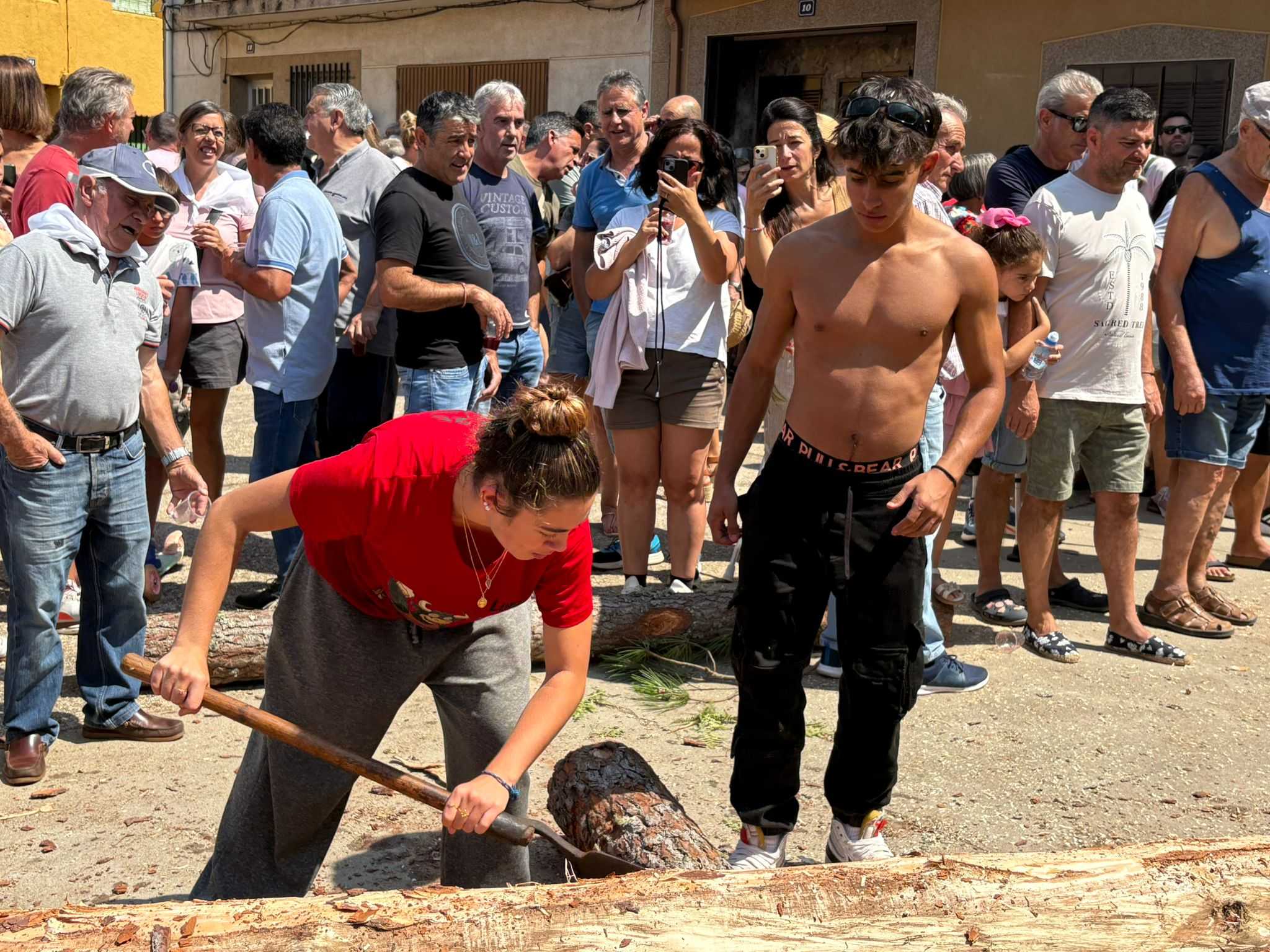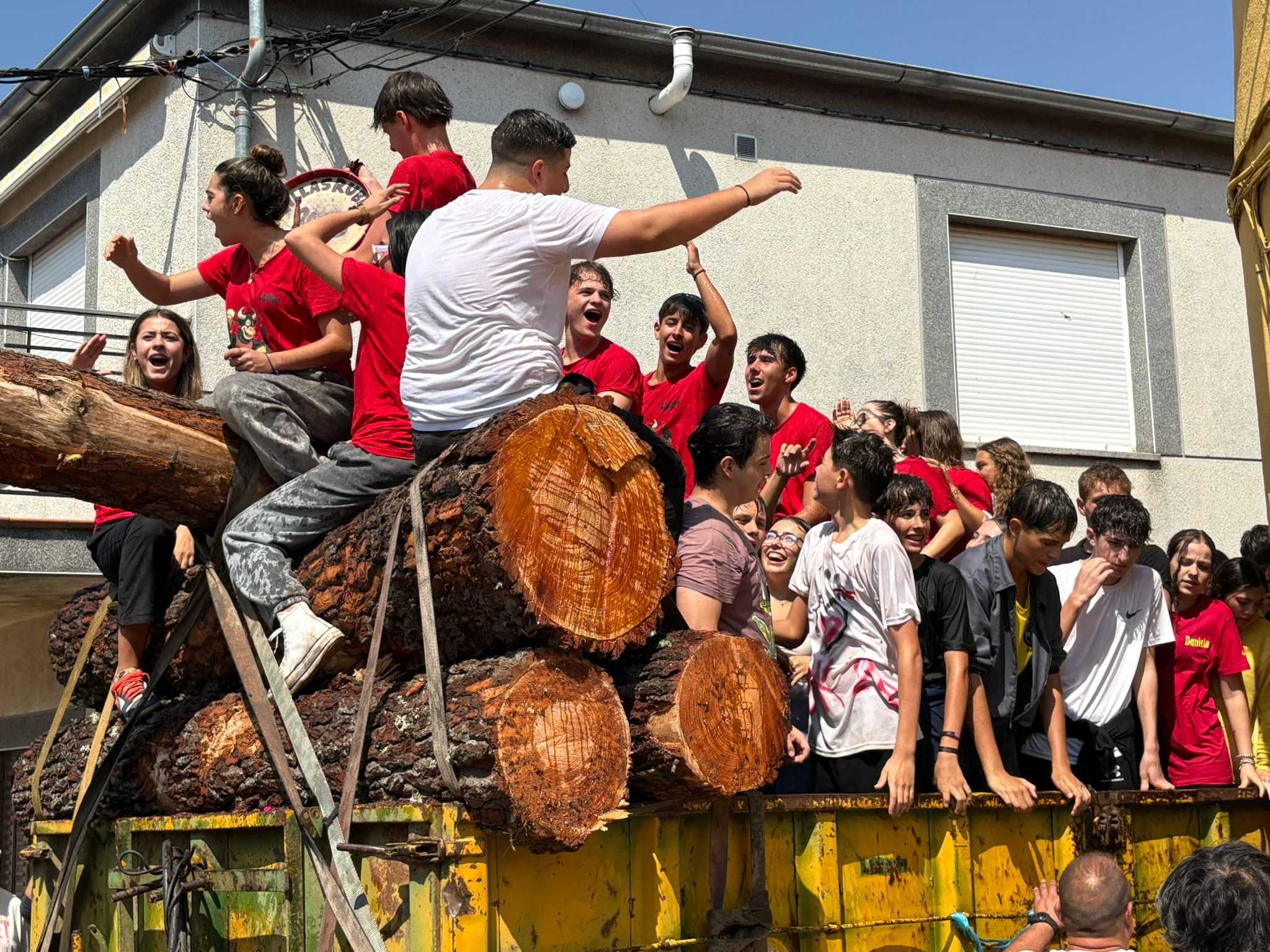Desde primera hora de la mañana se han ido cumpliendo los pasos de la tradición, desde ir a buscar el pino, almorzar en el monte y regresar para ponerlo en el pueblo, donde se ha izado a la una de la tarde.