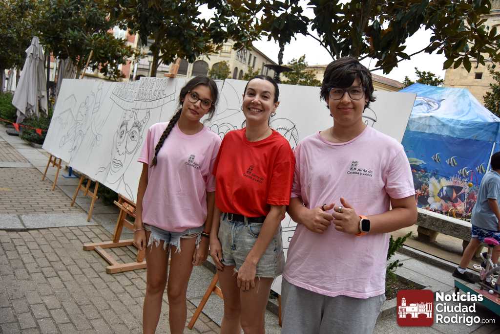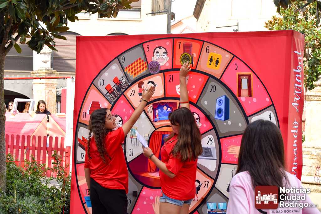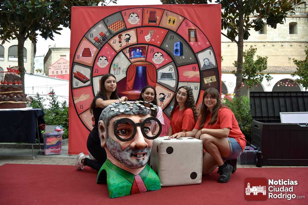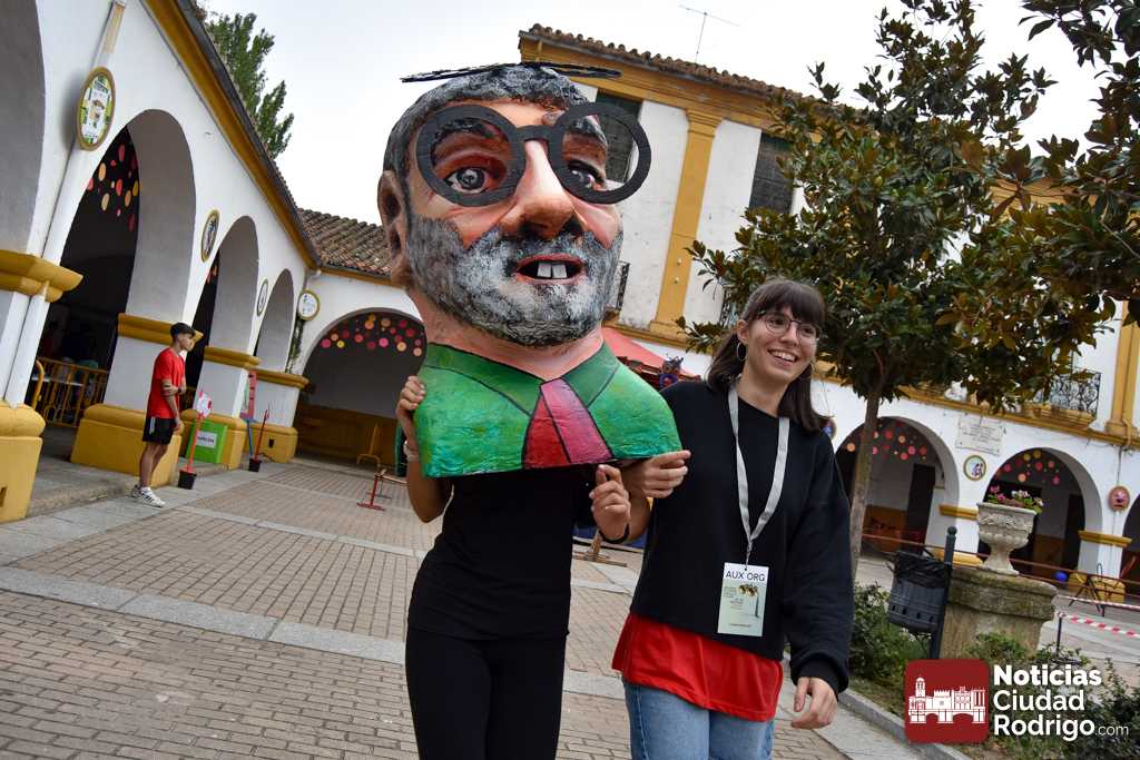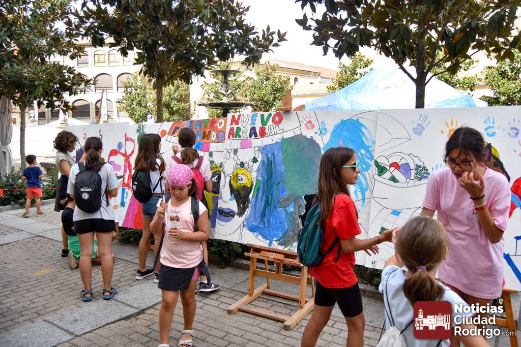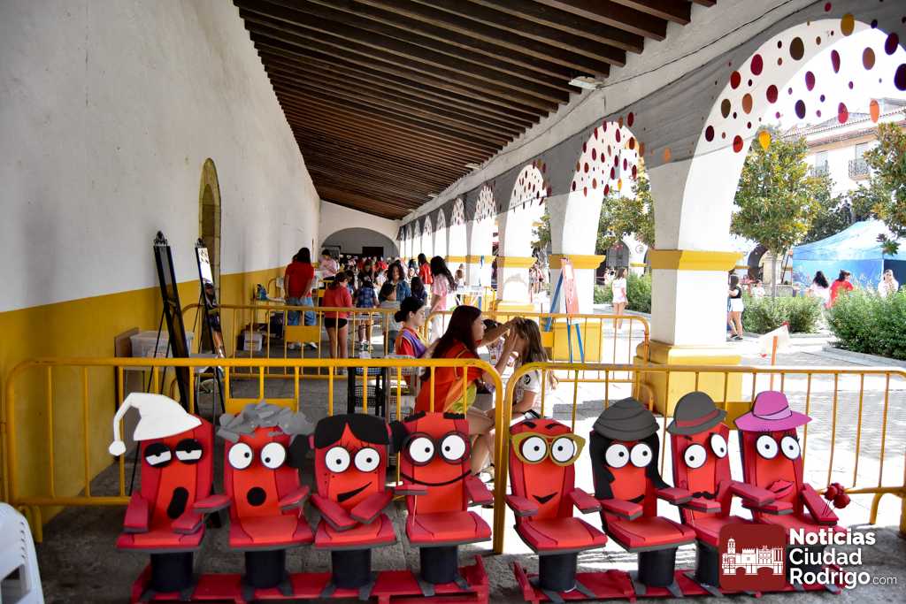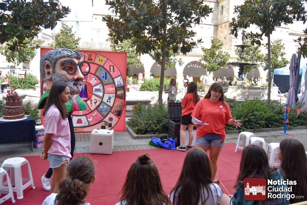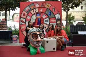 A las 10:00 h se procedió a abrir la puerta, en la que ya esperaban más de una decena de niños y niñas. A los más madrugadores se les otorgaron, como se había anunciado previamente, unas gafas al más puro estilo Fernando Arrabal a cuenta de la temática del evento, pues era imposible evitar ver representado al dramaturgo mirobrigense, tanto con el cabezudo, que hizo de nuevo acto de presencia; como del gran mural a cargo de la artista local Adelia Vicente, donde los niños y niñas están dejando su impronta, o el Gran Juego sobre el Teatro Nuevo «Fernando Arrabal».