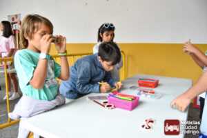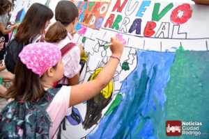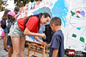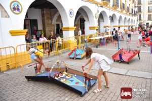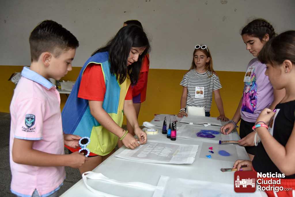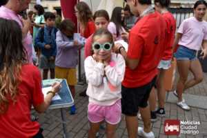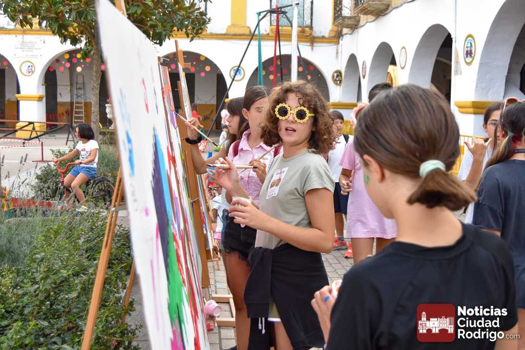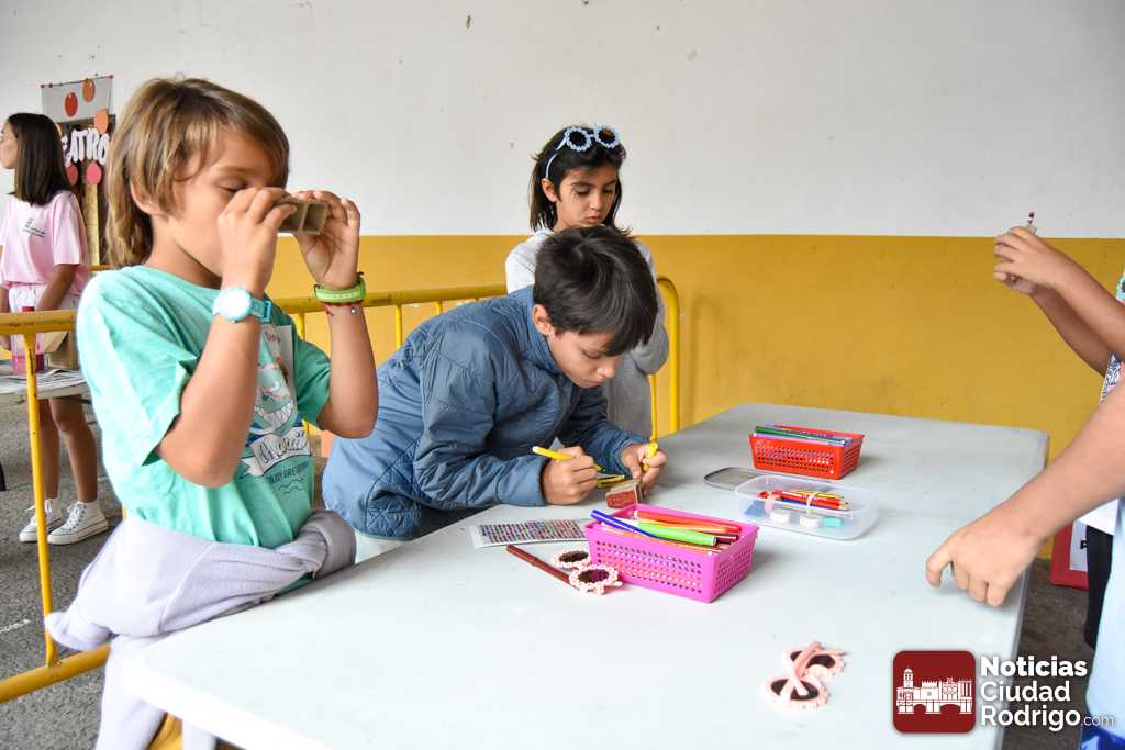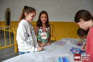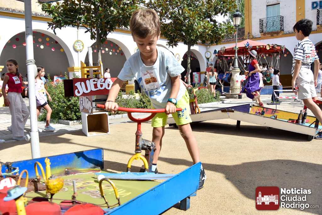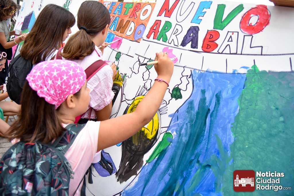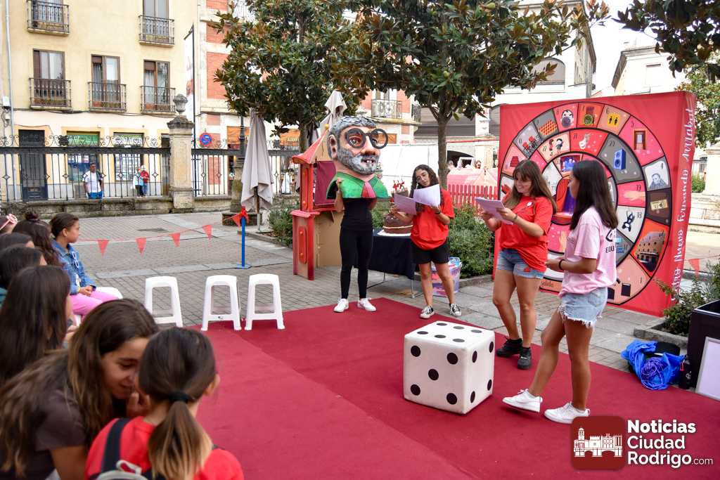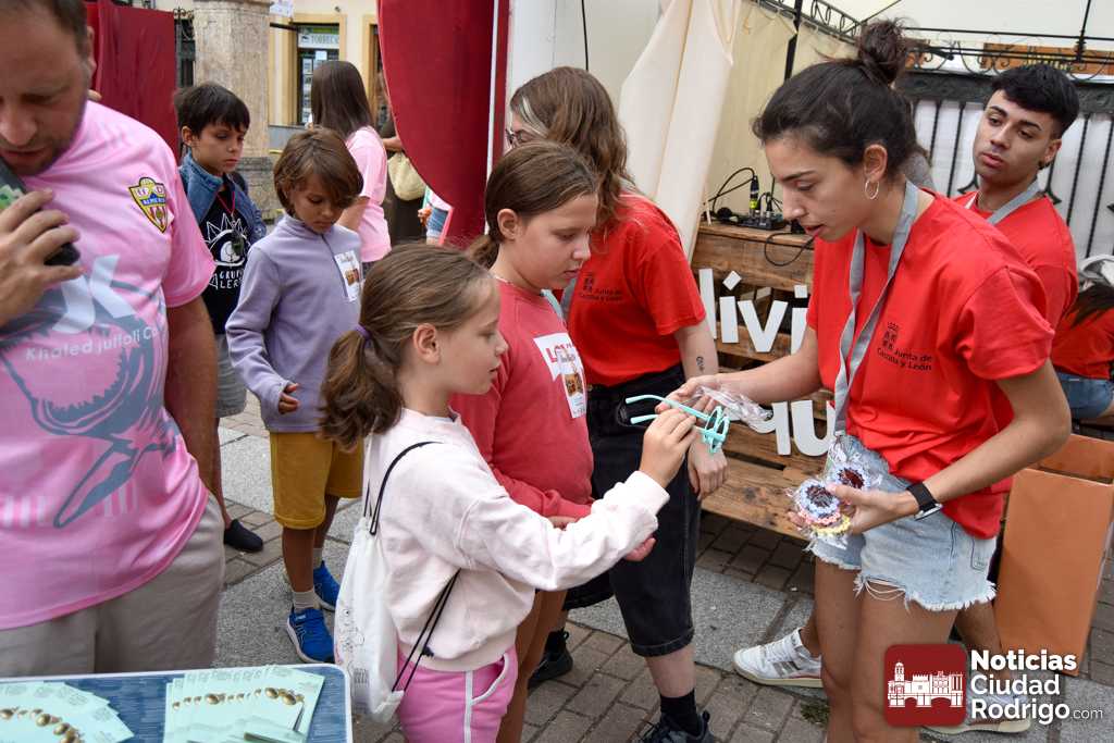 A las 10:00 h se procedió a abrir la puerta, en la que ya esperaban más de una decena de niños y niñas. A los más madrugadores se les otorgaron, como se había anunciado previamente, unas gafas al más puro estilo Fernando Arrabal a cuenta de la temática del evento, pues era imposible evitar ver representado al dramaturgo mirobrigense, tanto con el cabezudo, que hizo de nuevo acto de presencia; como del gran mural a cargo de la artista local Adelia Vicente, donde los niños y niñas están dejando su impronta, o el Gran Juego sobre el Teatro Nuevo «Fernando Arrabal».