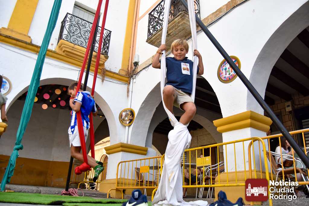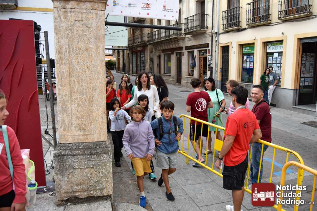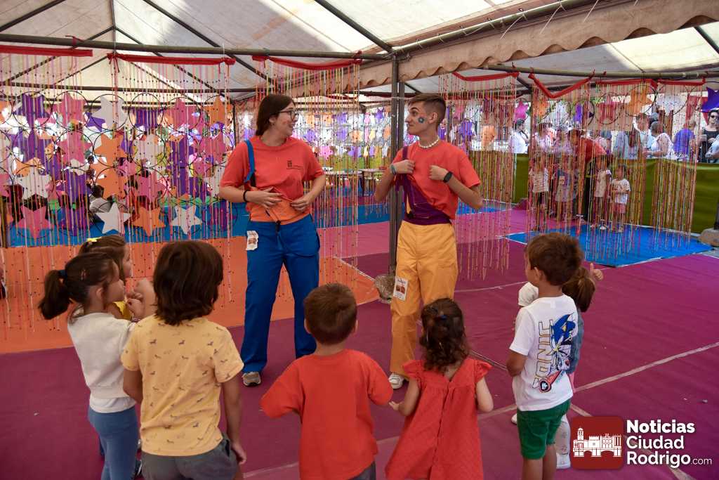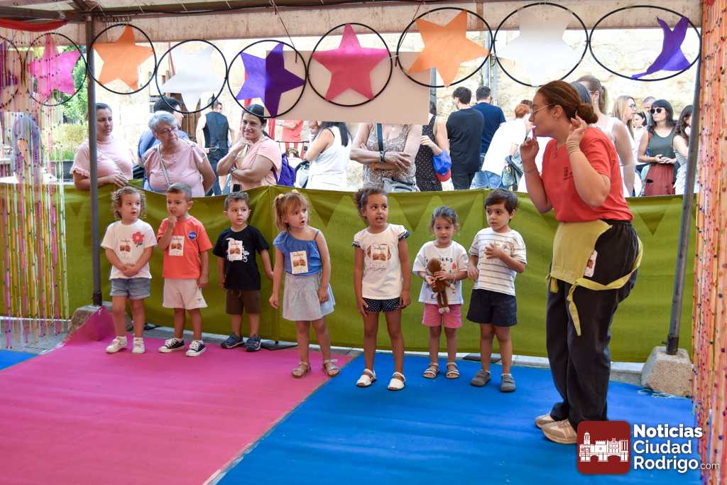 La primera matinal de la Feria de Teatro en Ciudad Rodrigo tenía como gran aliciente el arranque de uno de los eventos más multitudinarios de la misma como es el Divierteatro. Varios centenares de niños y niñas pasaron por la Plaza del Buen Alcalde y por la Plaza del Conde para disfrutar de una jornada con un gran número de actividades, muy llamativas algunas en especial, y que se prolongará en su horario habitual de 10:00 h a 13:00 h en ambos espacios, destinados a diferentes edades.