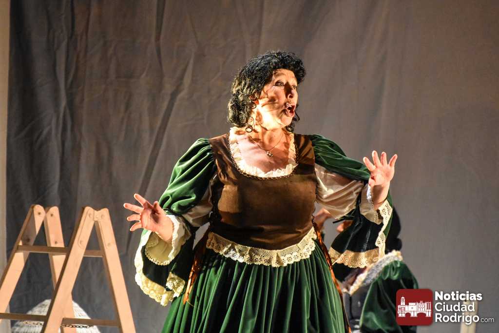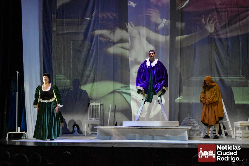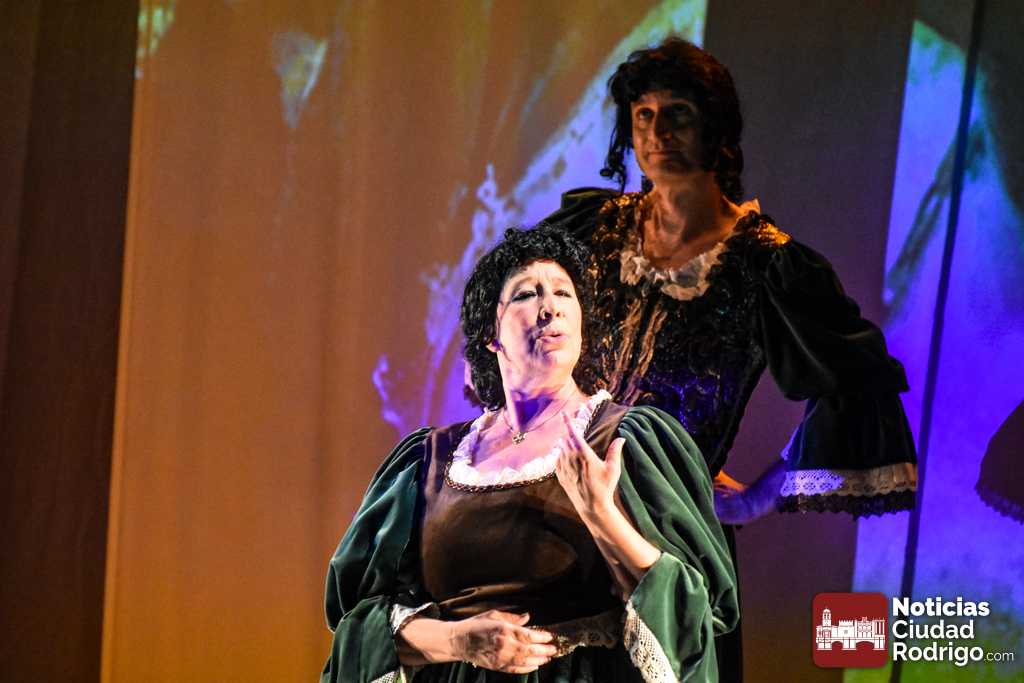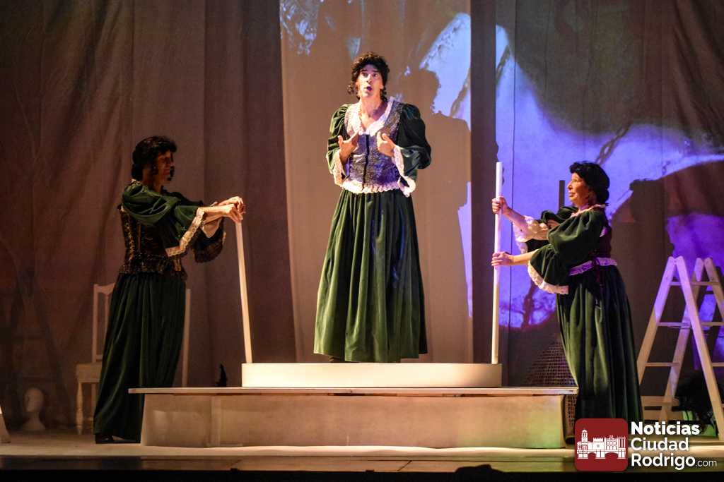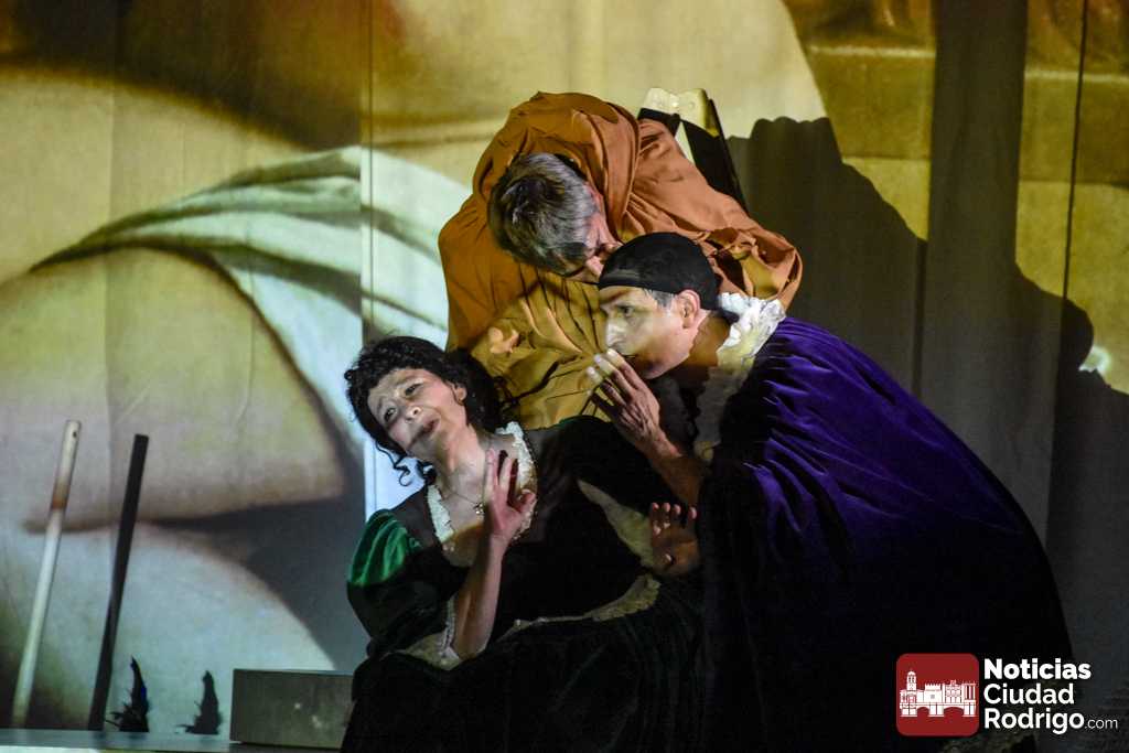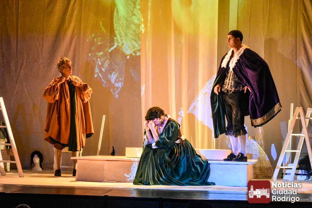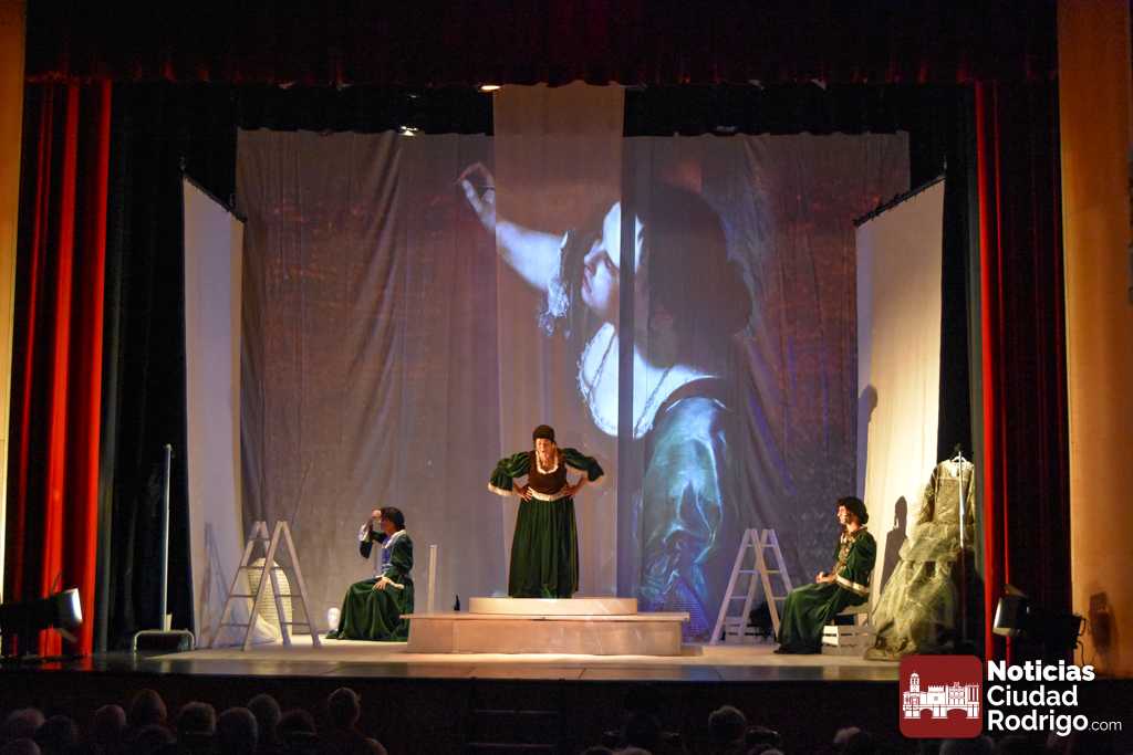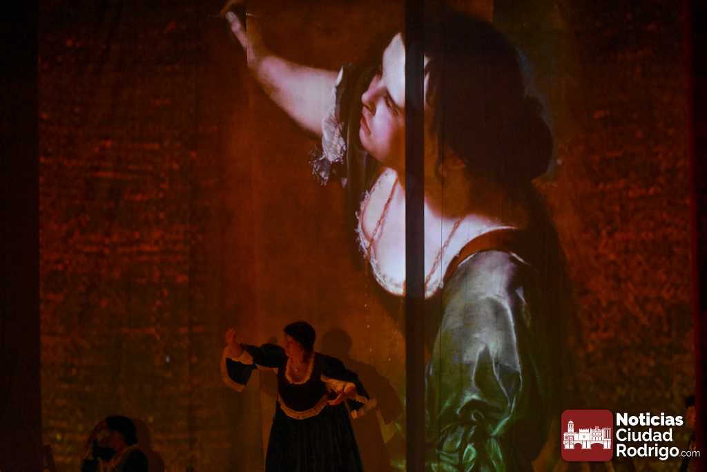 Cerca del lleno se quedó el ágora cultural mirobrigense para presenciar esta función correspondiente a la segunda tarde de la 28ª Feria de Teatro en Ciudad Rodrigo. Una obra que trató acerca de la vida y lucha de la pintora italiana del barroco, Artemisia Gentileschi, quién decide salirse del marco y abandonar las dos dimensiones para contar sus inquietudes al público, sin tener muy claro por qué, pero con la necesidad de hacerlo, llevando a los espectadores por un viaje alrededor de su vida con el hilo conductor de conocer dicha «inquietud» a través del abordaje de temas actuales y humanos.