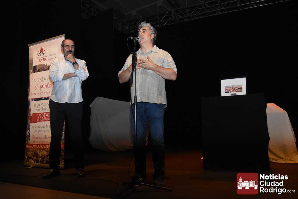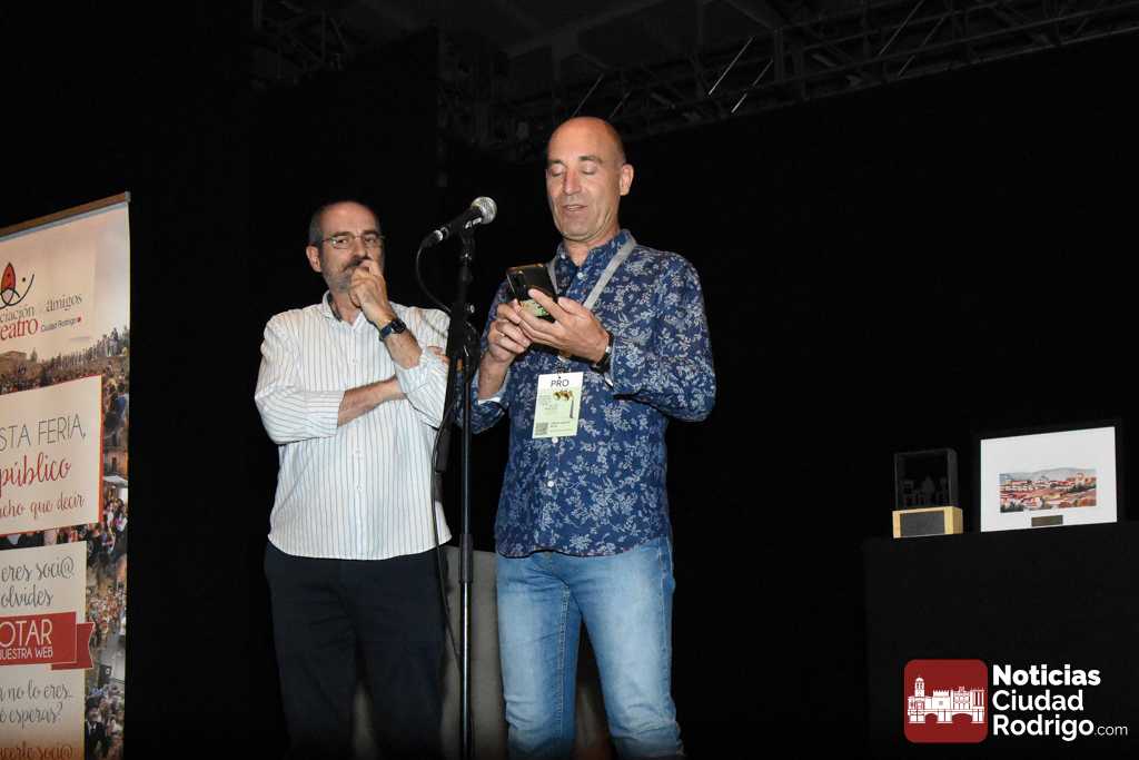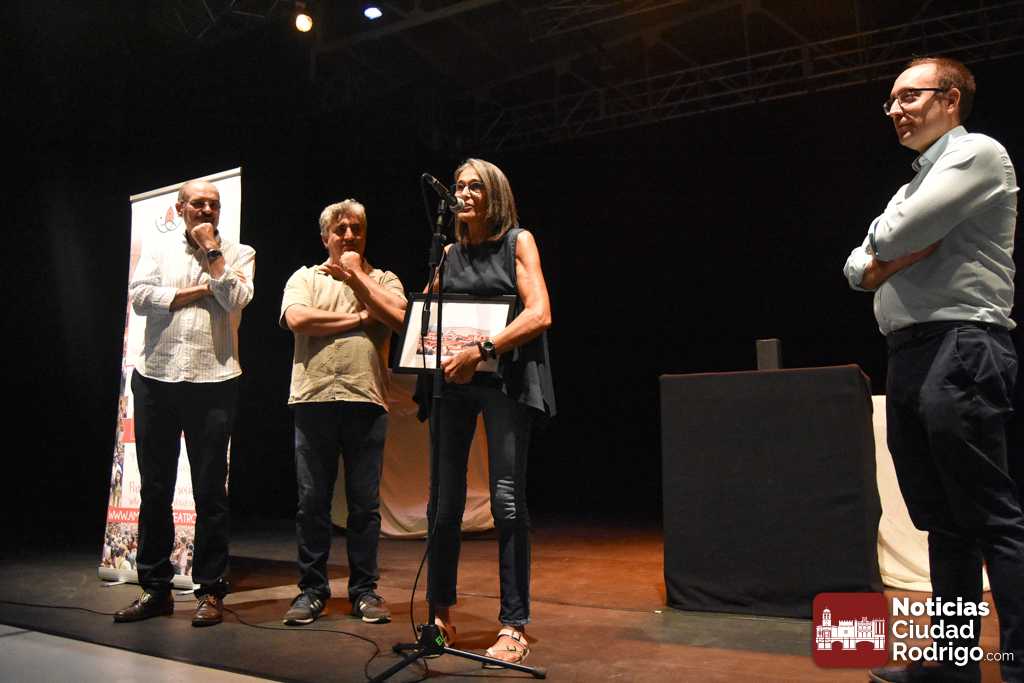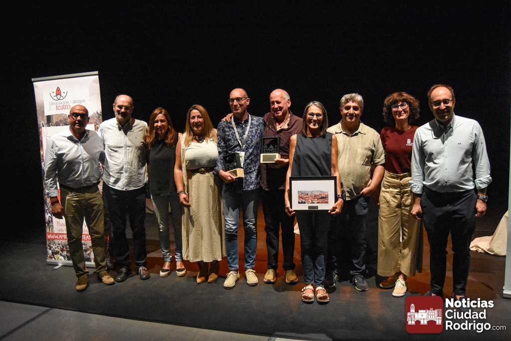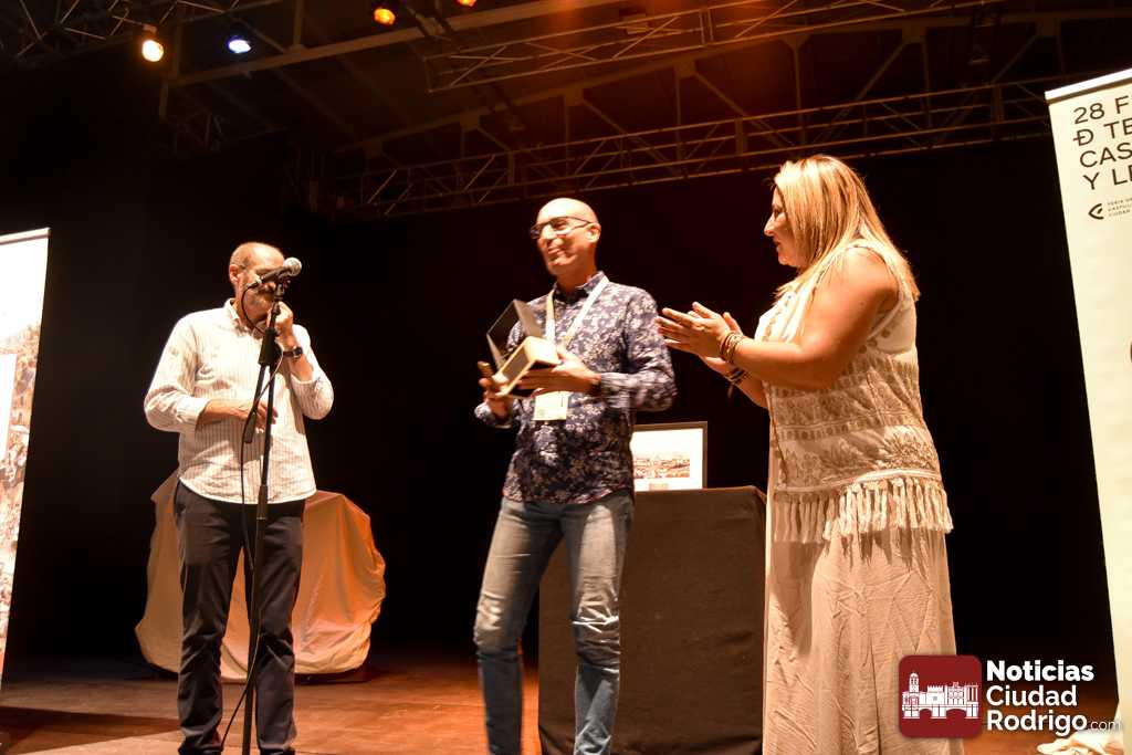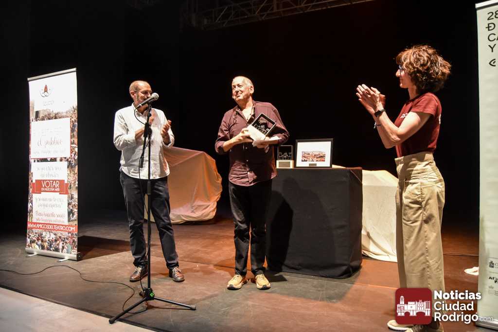 Dentro de las actividades complementarias, este sábado tuvo lugar la entrega de los Premios del Público de la Feria correspondientes a 2024. Fue en el Espacio Afecir, momentos antes de la representación de ‘Antepresentes’. Los galardones convocados cada año por la Asociación de Amigos del Teatro de Ciudad Rodrigo y decididos por los espectadores recayeron en la pasada edición en Zen del Sur por ‘Xpectro’, como mejor espectáculo de sala para público joven y adulto; en Tititeros de Binéfar por ‘El abrazo’, como mejor trabajo de artes de calle, y en Festuc Teatre por ‘Yo, Tarzán’, reconocido como mejor montaje para público infantil y familiar.