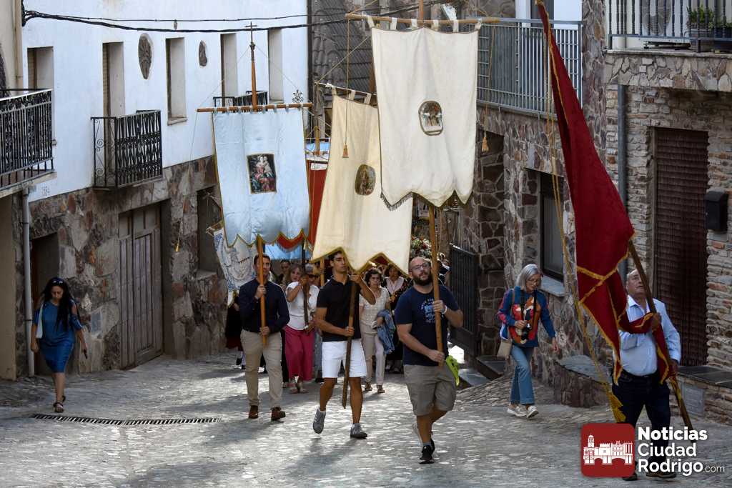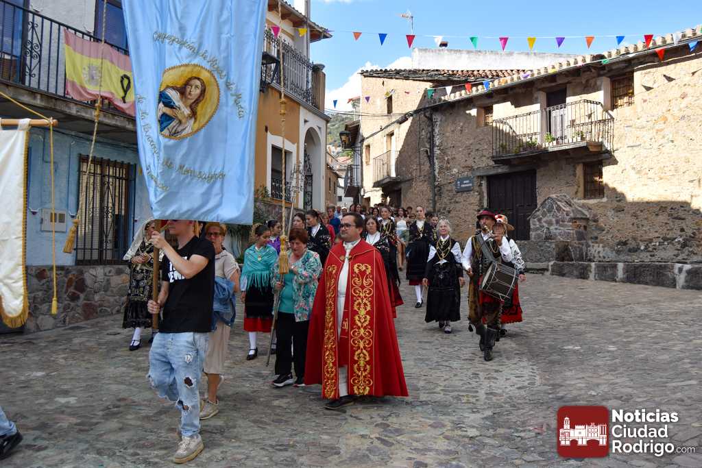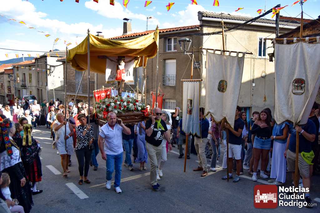 Aunque ya ayer hubo distintas actividades previas, hoy viernes ha tenido lugar uno de los actos más característicos y reseñables de las fiestas de Monsagro, la subida del santo Cristo del Amparo desde la ermita hasta la iglesia. Es este un acto que cuenta con gran participación, de personas de todas las edades, además de un gran número de mujeres ataviadas con los trajes típicos. El saludo de los estandartes de las diferentes cofradías, el volteo de las campanas por los muchachos de la localidad, todo se realiza de la misma manera desde hace mucho, mucho tiempo. Respeto a la tradición y destacable belleza estética en una localidad a la que siempre merece la pena volver y más en un fin de semana festivo como este. El programa completo, al finalizar la galería fotográfica.