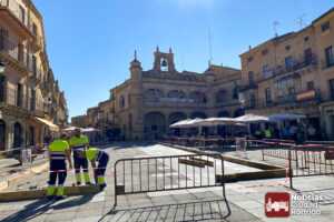 En marcha el montaje de la pista de arena en la Plaza Mayor para la Feria del Caballo