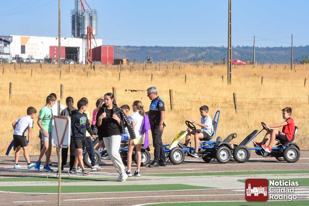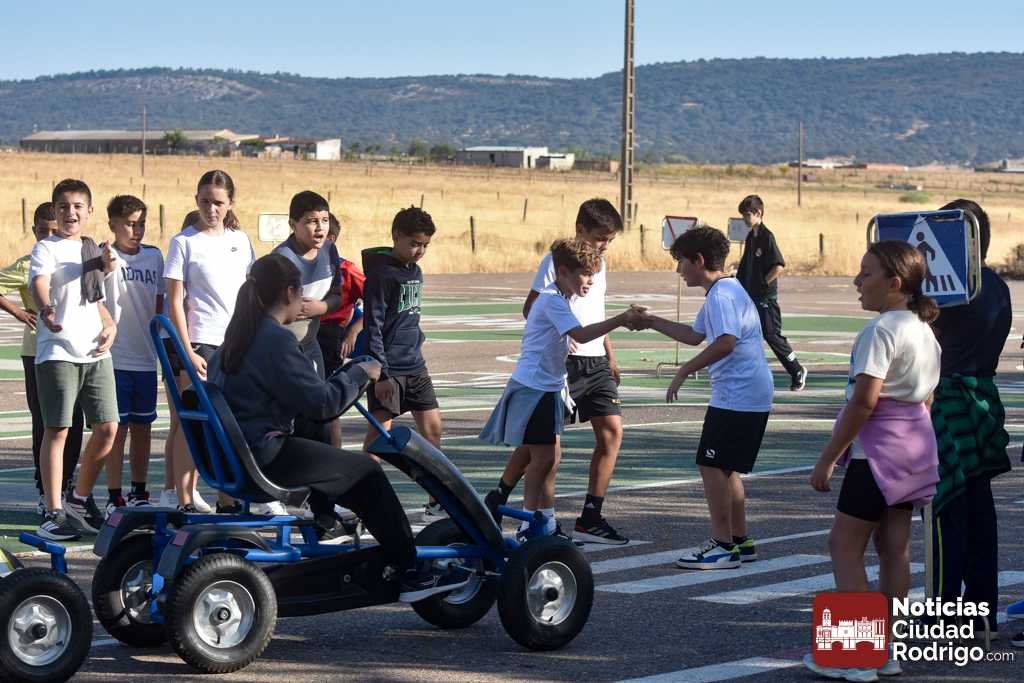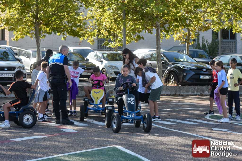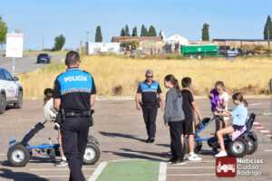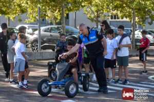 Esta actividad, dirigida por Policía Local y con la presencia del concejal Rubén Benito, consistió en la concienciación de normas viales correctas, practicando in situ su correcta ejecución a pie y con vehículos a pedales, y posteriormente otorgarle un obsequio a los escolares participantes.