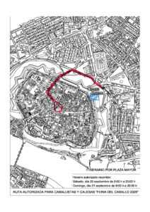 Nuevamente, y al igual que el año pasado, se ha diseñado un circuito a caballo por el centro histórico e inmediaciones del recinto ferial, que tendrá como punto de salida y llegada la ZONA DEL