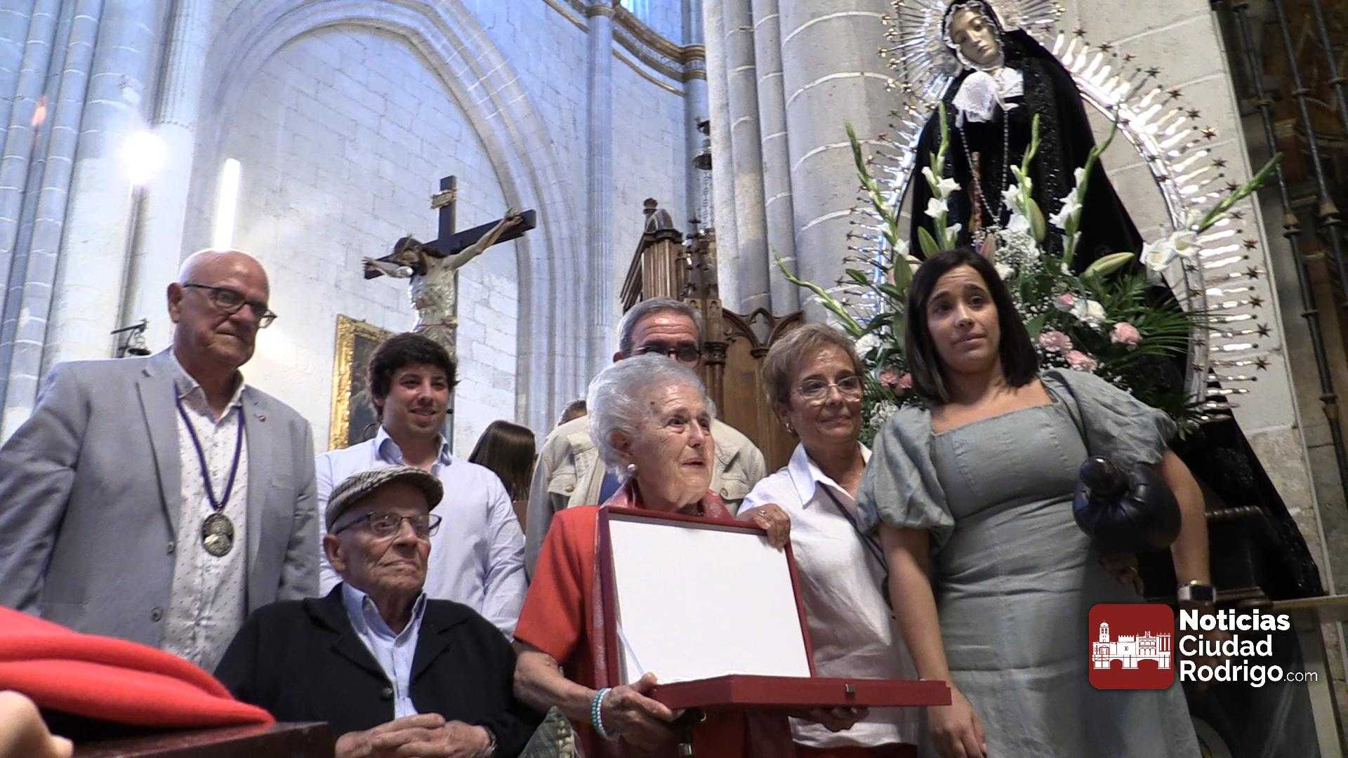 También, ha habido un homenaje a la cofrade más antigua, Jovita Benito Sevillano, que ha sido nombrada Cofrade de Honor, por ser muy devota de Nuestra Señora de la Soledad. La homenajeada ha recibido el título visiblemente emocionada y en su nombre, su hija ha dado las gracias y ha invitado a todos a disfrutar de un dulce y un vino dulce a la puerta de la Catedral, recordando que así se hacía antiguamente.