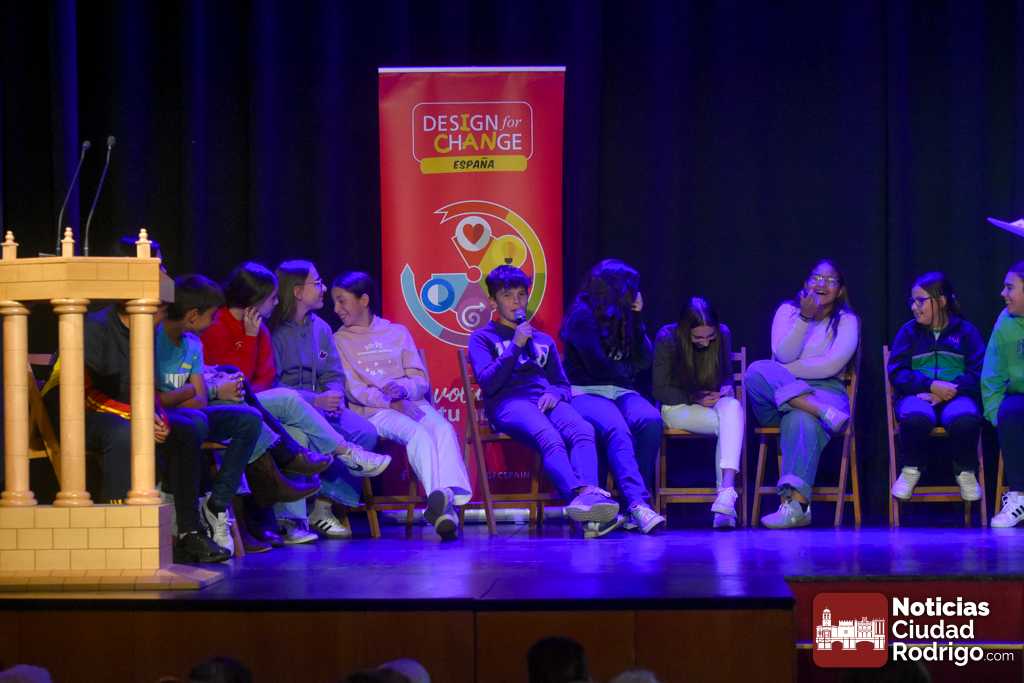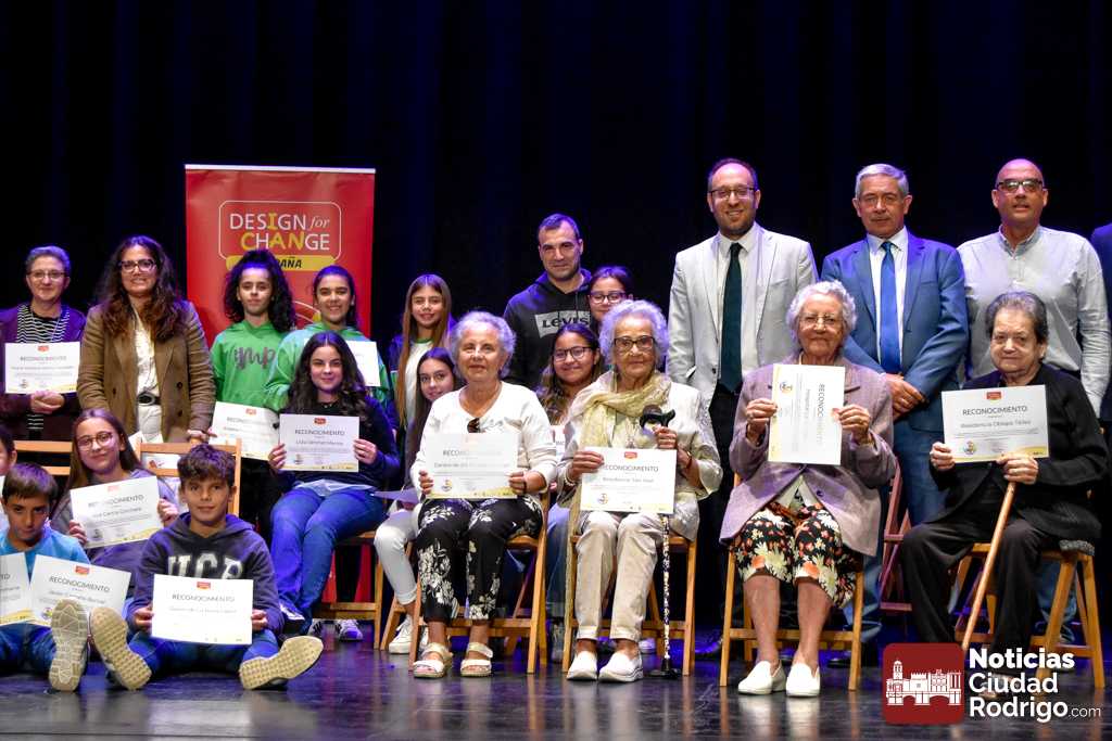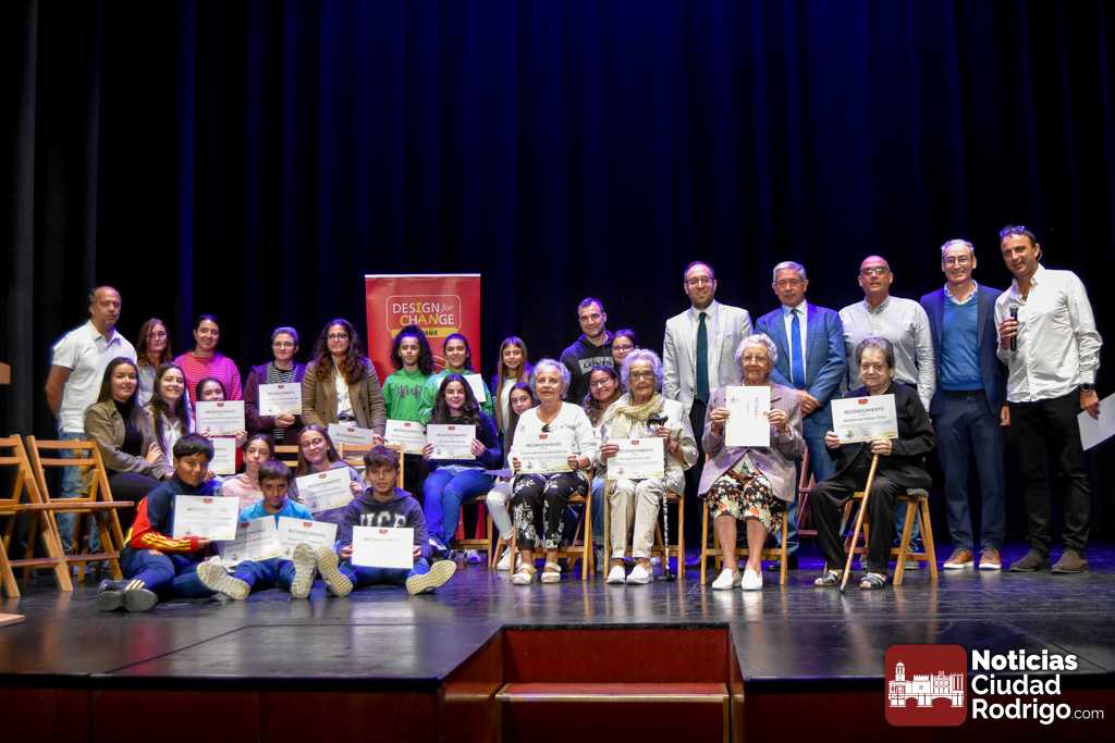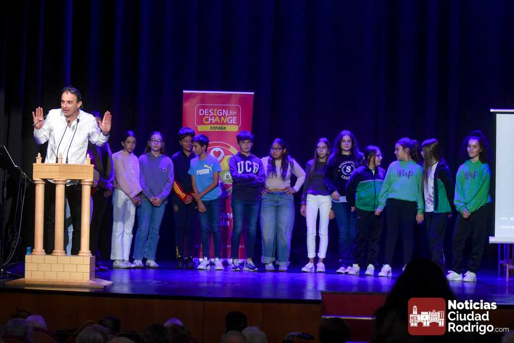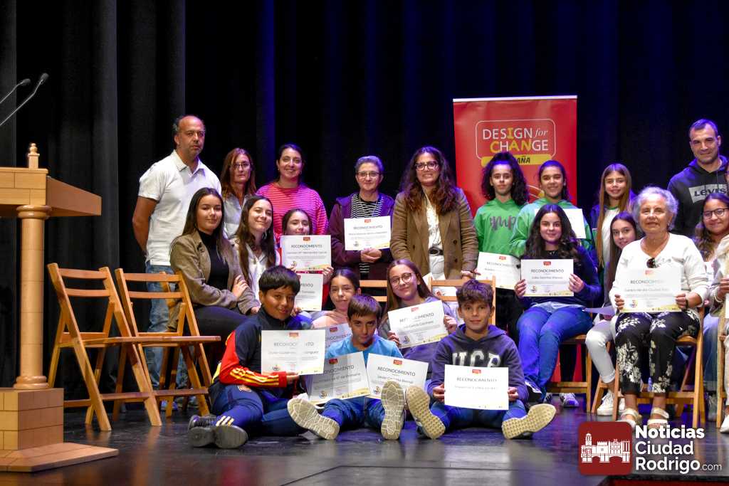 El Teatro Nuevo «Fernando Arrabal» acogió durante la matinal de martes la entrega de diplomas del programa «Design For Change» que se ha ido desarrollando en Ciudad Rodrigo durante los últimos meses del curso 2024/25 a través de un sistema metodológico que permite la participación activa del alumnado y la toma de decisiones. En este programa han colaborado además el Ayuntamiento de Ciudad Rodrigo, Diputación de Salamanca, ADECOCIR y la Universidad Pontificia de Salamanca.