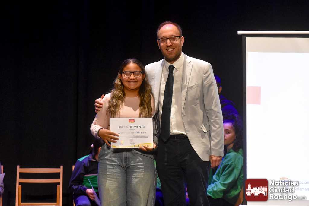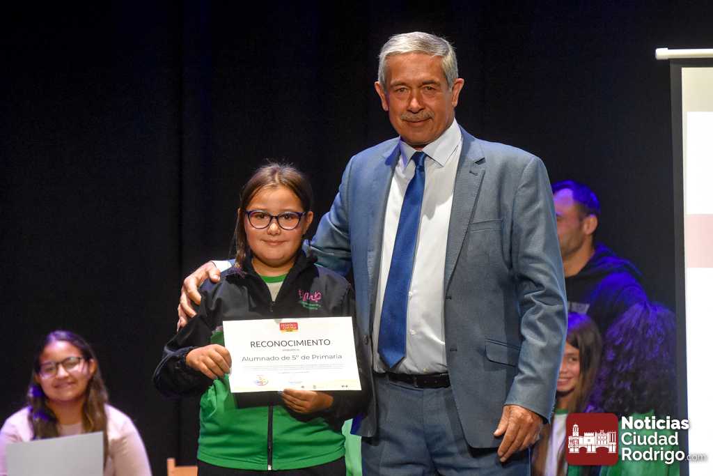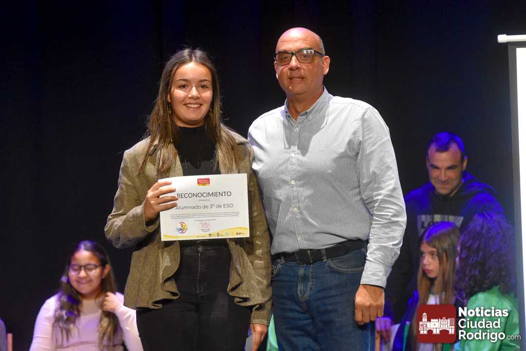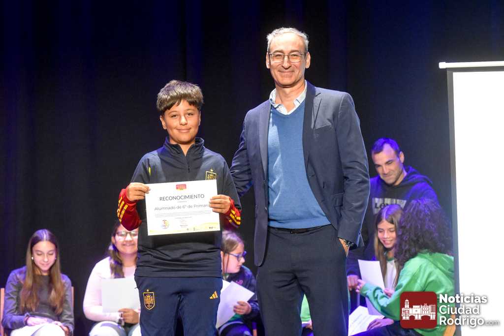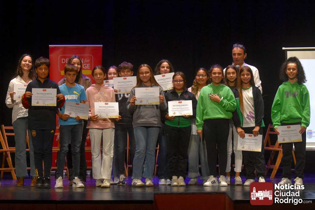 El Teatro Nuevo «Fernando Arrabal» acogió durante la matinal de martes la entrega de diplomas del programa «Design For Change» que se ha ido desarrollando en Ciudad Rodrigo durante los últimos meses del curso 2024/25 a través de un sistema metodológico que permite la participación activa del alumnado y la toma de decisiones. En este programa han colaborado además el Ayuntamiento de Ciudad Rodrigo, Diputación de Salamanca, ADECOCIR y la Universidad Pontificia de Salamanca.