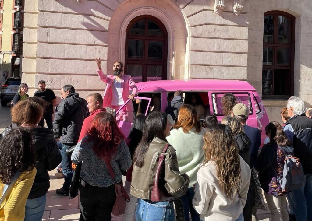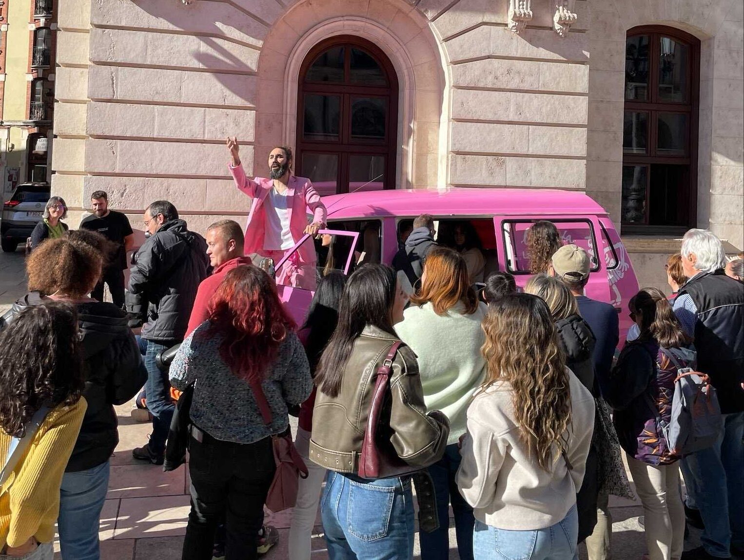 El mirobrigense tuvo un papel en la puesta en escena en Burgos de «La Vida en Rosa», con una furgoneta y traje de tal color