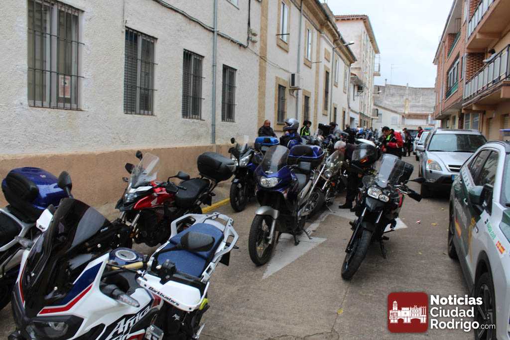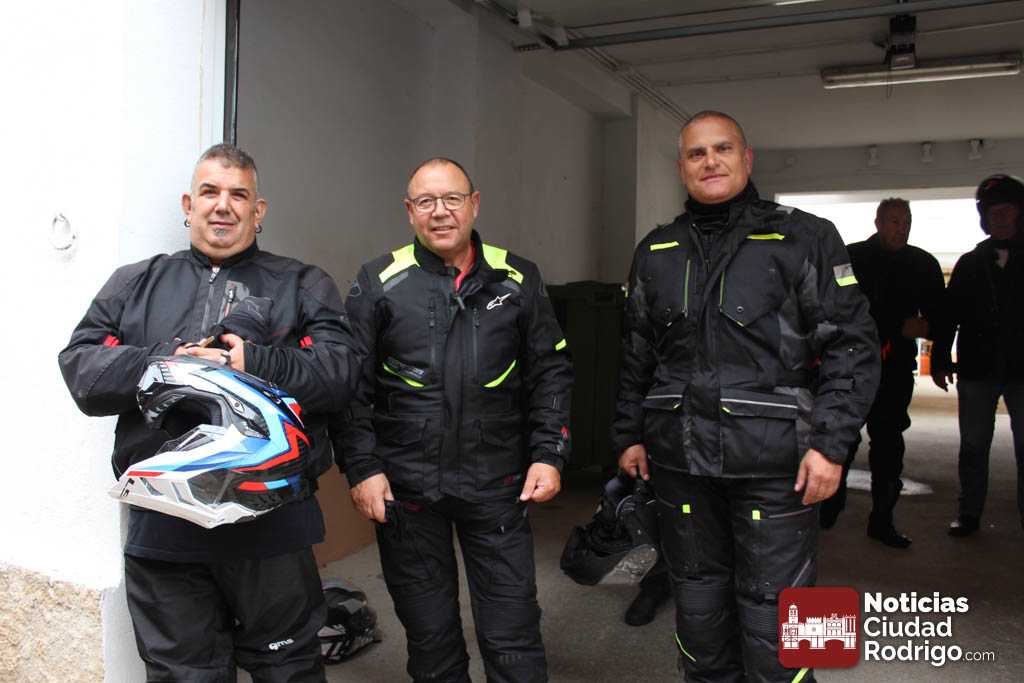65 personas participan esta mañana en la Ruta Motera Patrona 2025, incluida en el programa de actos con motivo de la celebración de la Virgen del Pilar, patrona de la Guardia Civil, en el cuartel de Ciudad Rodrigo. Esta ruta se realiza en memoria de José Antonio Salicio y Ricardo Sánchez, guardias civiles de Tráfico fallecidos en servicio en los años 2020 y 2021.
