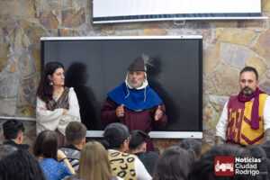 La Asociación Rodericus culminó su ronda de visitas previas a la Feria Medieval, que abre mañana viernes sus puertas, con una entretenida y divulgativa matinal por diferentes centros educativos mirobrigenses, como fueron la Escuela Infantil, la Escuela de Adultos, el Colegio El Puente y los institutos Fray Diego y Tierra de Ciudad Rodrigo.
