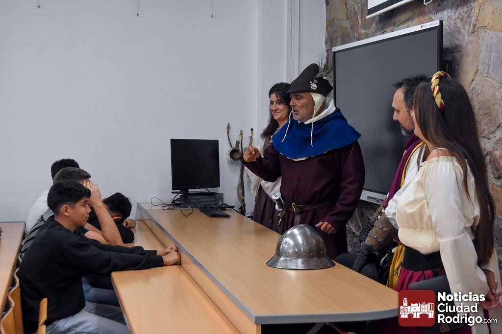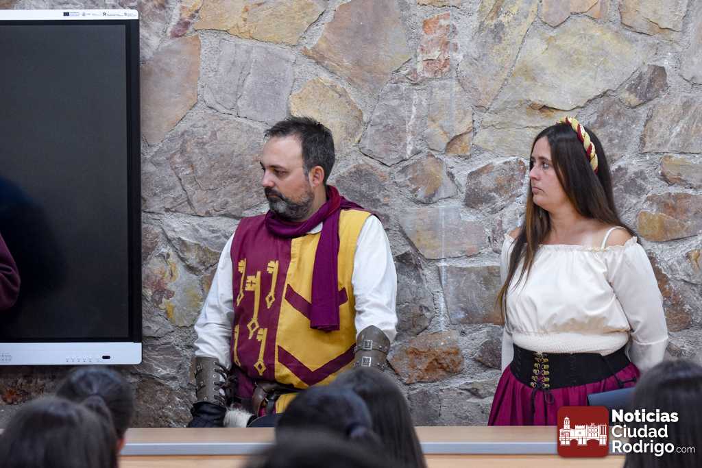 La Asociación Rodericus culminó su ronda de visitas previas a la Feria Medieval, que abre mañana viernes sus puertas, con una entretenida y divulgativa matinal por diferentes centros educativos mirobrigenses, como fueron la Escuela Infantil, la Escuela de Adultos, el Colegio El Puente y los institutos Fray Diego y Tierra de Ciudad Rodrigo.
