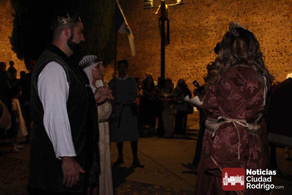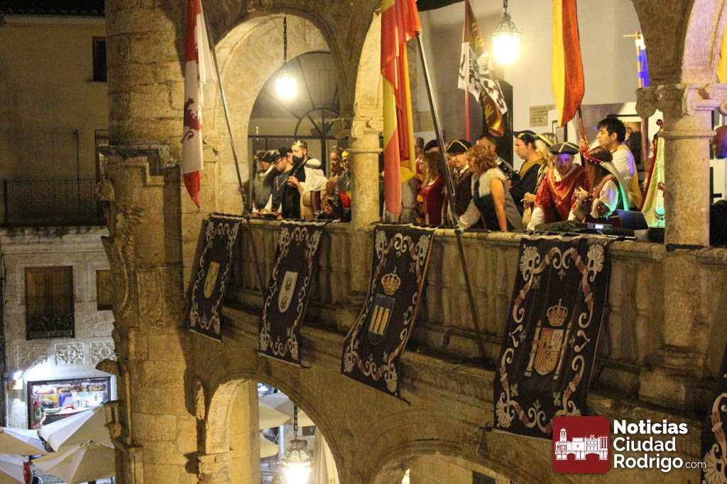 A continuación, por la calle San Juan han llegado a la plaza Mayor donde la Corporación Municipal y los reyes han subido a la galería alta de la Casa Consistorial, allí se ha leído la declaración del fuero de Ciudad Rodrigo.