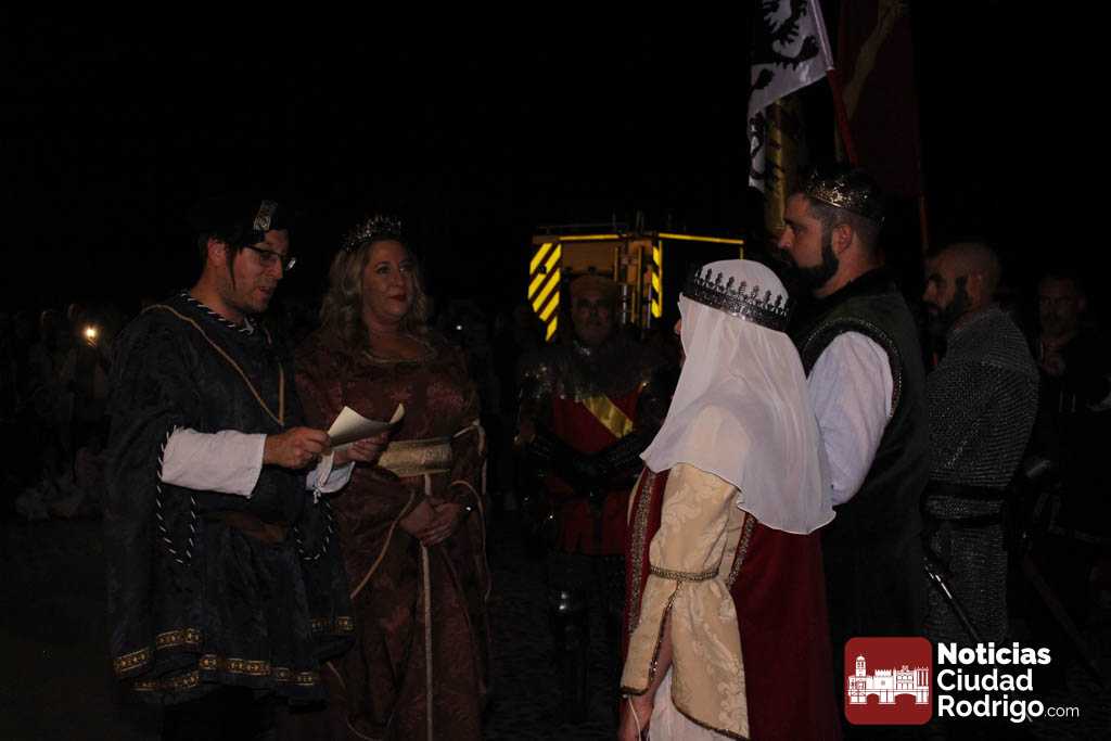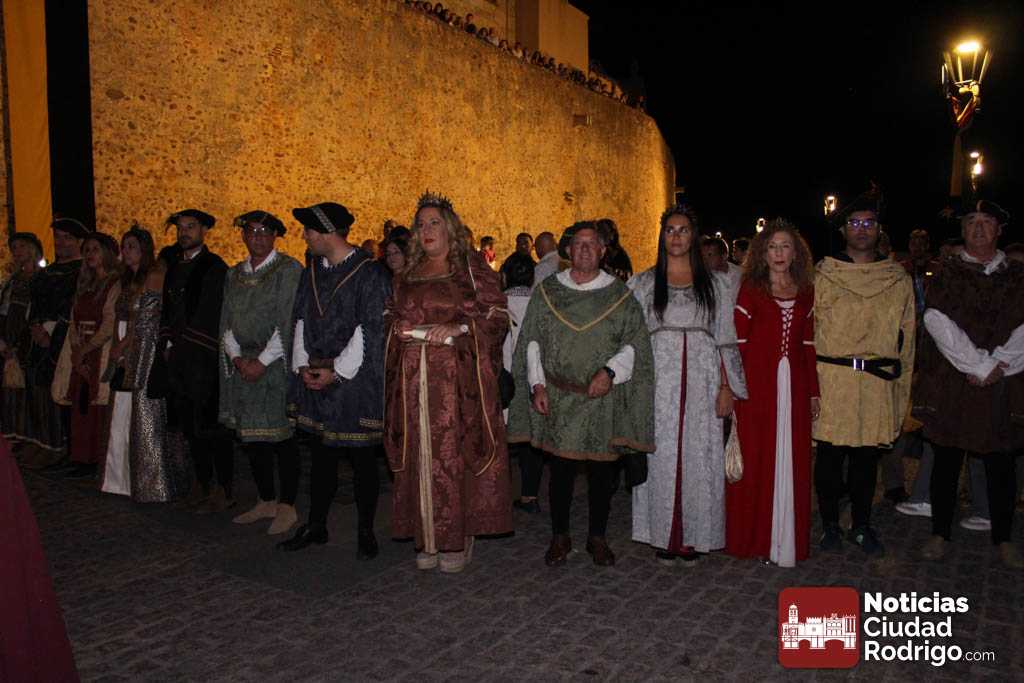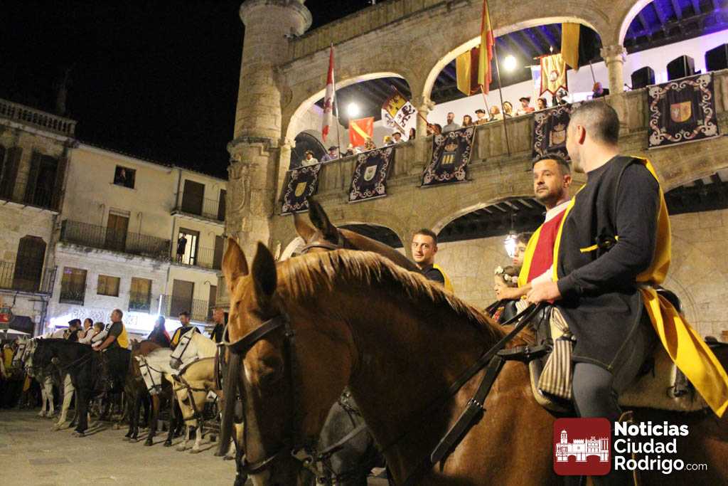 A continuación, por la calle San Juan han llegado a la plaza Mayor donde la Corporación Municipal y los reyes han subido a la galería alta de la Casa Consistorial, allí se ha leído la declaración del fuero de Ciudad Rodrigo.