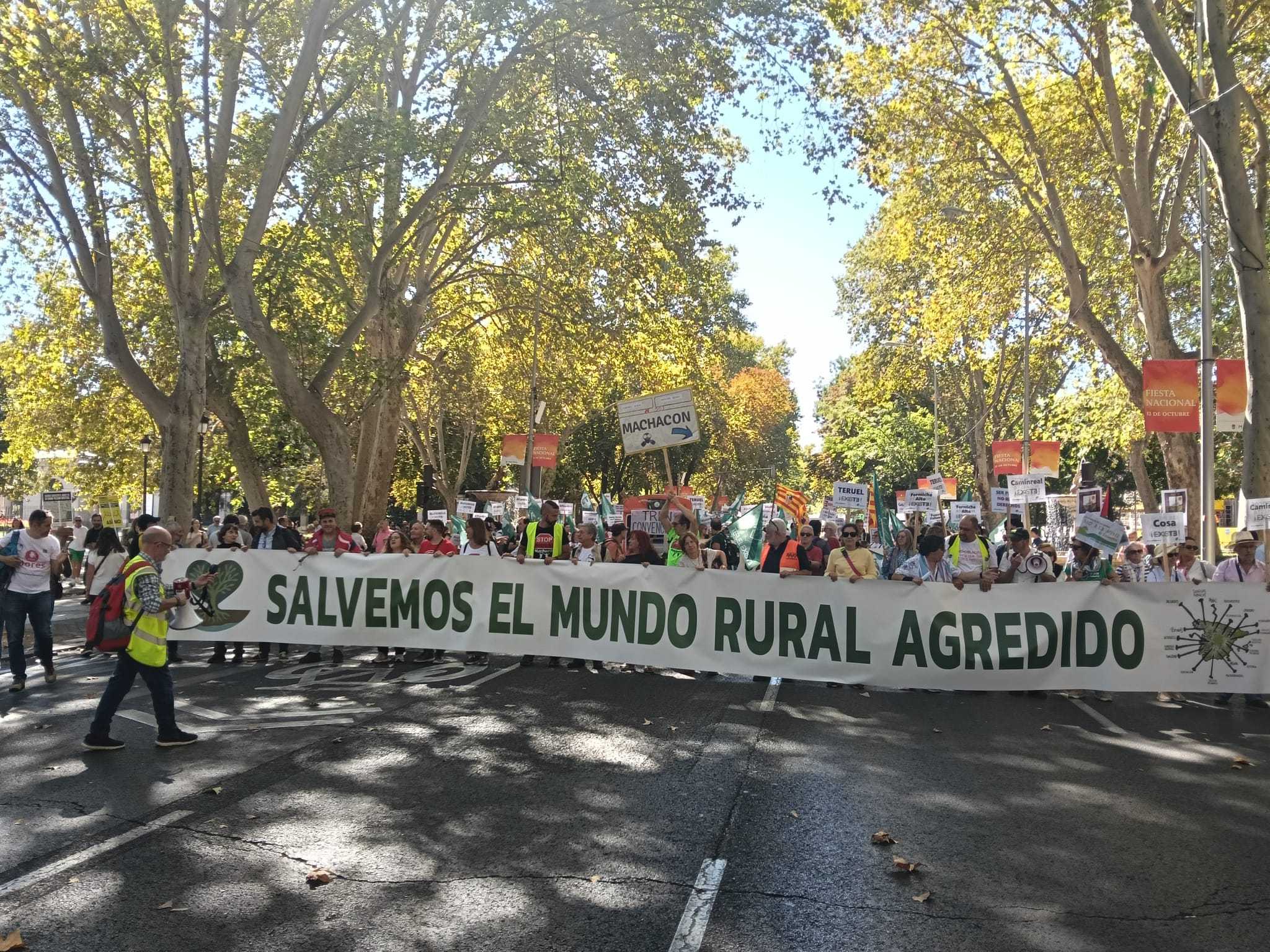 La movilización, que ha reunido a miles de personas y más de 500 plataformas de toda España, «denuncia el actual modelo de desarrollo que, supone un “expolio” para el campo y lo convierte en un “territorio de sacrificio”»
